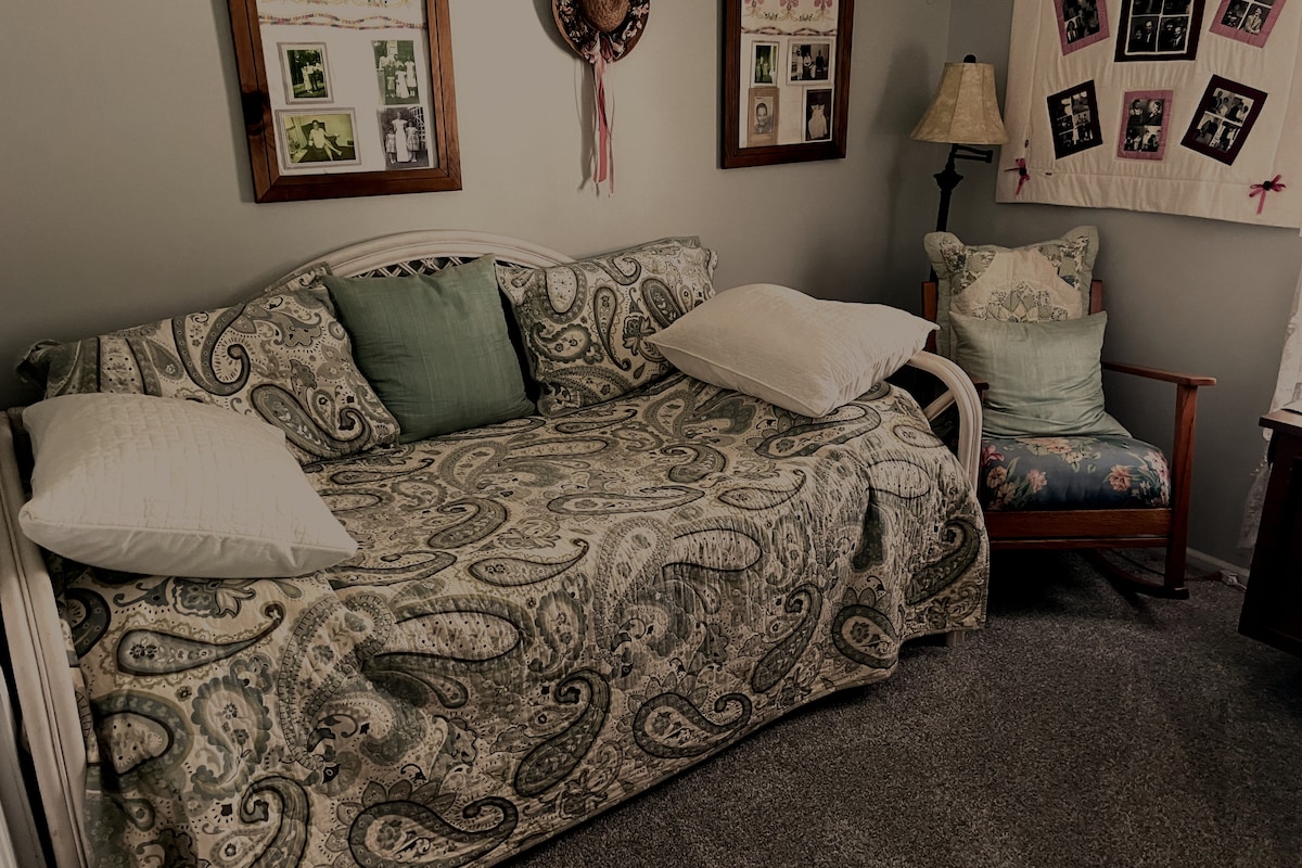 Perfekt für reisende Krankenschwestern, da es in der Nähe der Autobahn und aller Krankenhäuser ist. Es wurde wunderschön mit hängenden Balken im Sonnenzimmer mit Blick auf den Wald eingerichtet. Es ist mit allen möglichen Blumen, Bäumen und Vögeln gefüllt. Komm und genieße die Ruhe dieses schönen historischen Hauses aus den 70er Jahren. Alles wurde so gestaltet, dass sich eine Person in der Ruhe dieses Hauses entspannen kann, das mit Musik gefüllt ist, wenn du möchtest.