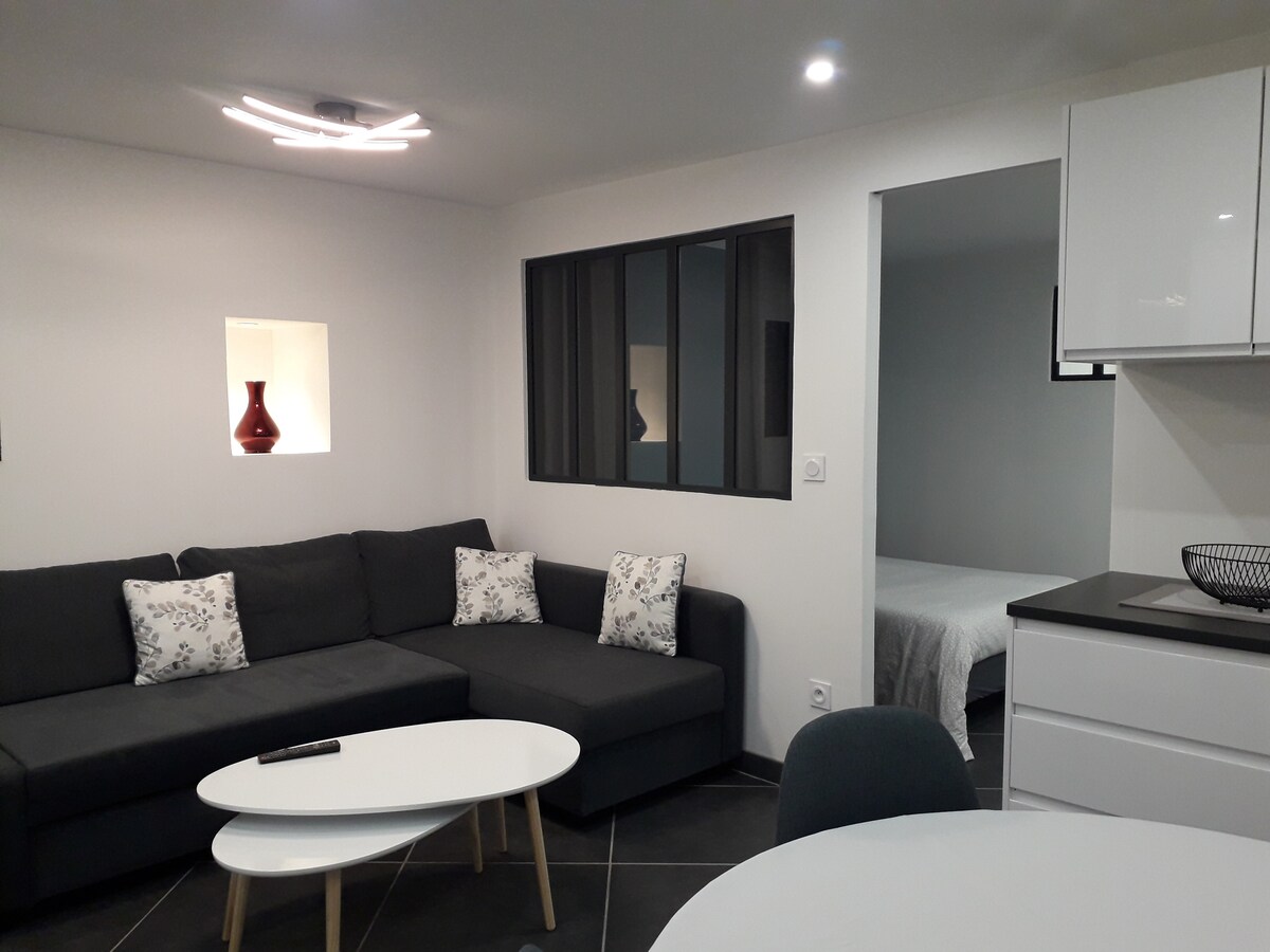 Renovierte Unterkunft, in der Nähe eines Carrefour Marktes (50 m) mit Waschsalon, einer Skistation 12 km (Le Collet d 'Allevard), einer Therme (1 km), einem Casino (Spielstätte, 500 m), einer Gleitschirmschule (250 m). Sie ist perfekt für Paare, Alleinreisende, Familien (mit Kindern) und Vierbeiner. Die Wohnung ist mit einem Doppelbett und einem Schlafsofa (140 cm) ausgestattet. Hof mit Tischen und Stühlen zu Ihrer Verfügung, aber Parken verboten.