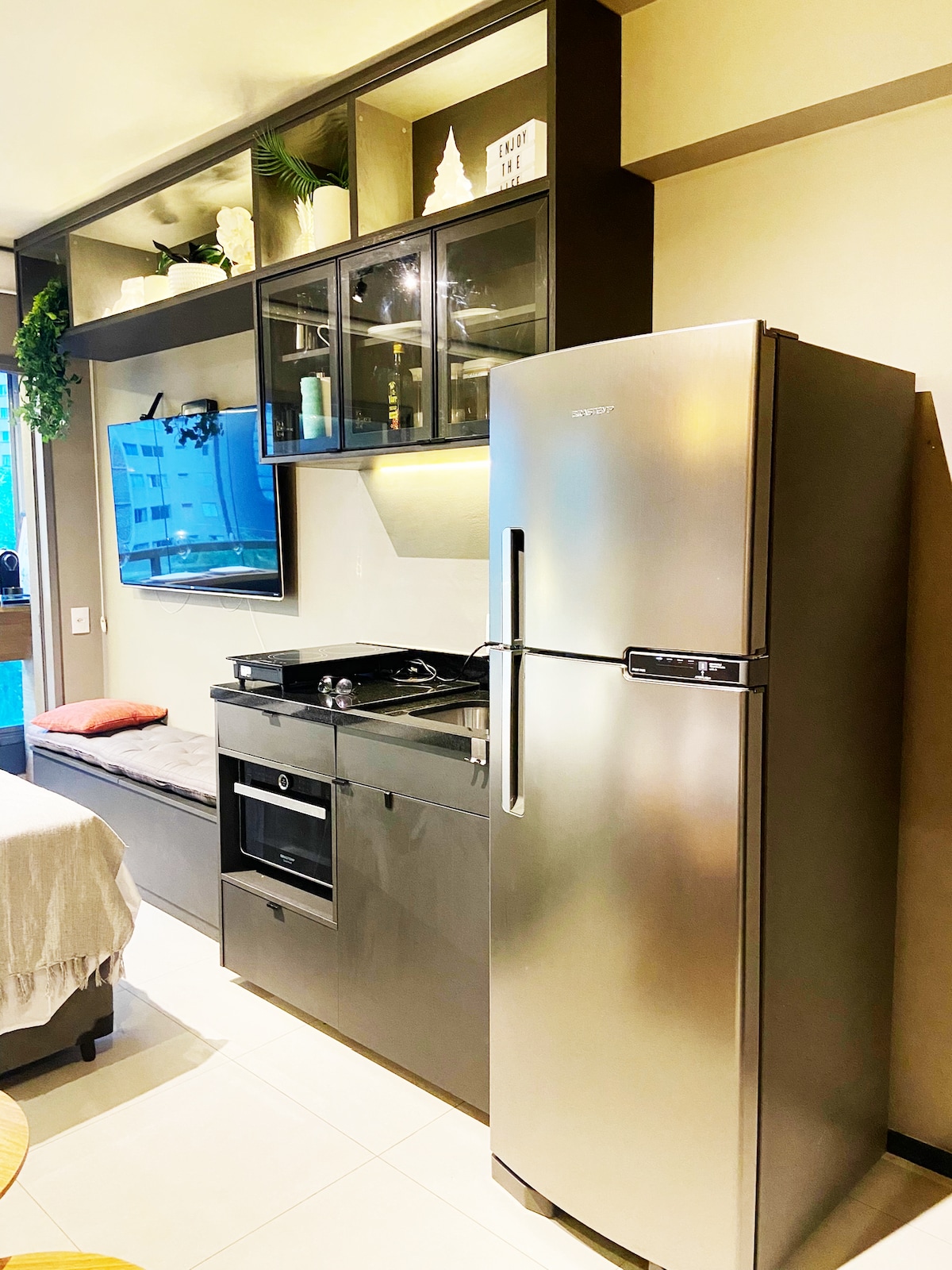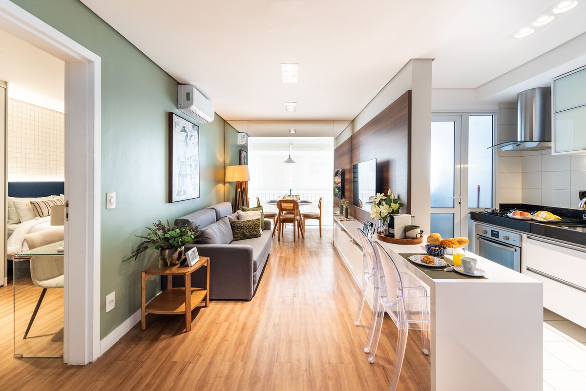 Das neue und moderne Studio von 24 m2 befindet sich in Butantã, 10 Minuten zu Fuß von der U-Bahn entfernt und ist eine ausgezeichnete Wahl für Ihren Freizeit- oder Geschäftsaufenthalt in der Stadt São Paulo. Der Raum: - Verfügt über ein Queensize-Bett und ein Schlafsofa. - Ausgestattete Küche, 2-Flammen-Kochfeld, Haushaltsgeräte, Weinkeller, Deckenventilator - High-Speed-WLAN - Elektronisches Schloss - Strategische Lage: USP, Instituto Butantan, Parque Villa Lobos, Shop Eldorado, Morumbis-Stadion, Vila Madalena, Av. Paulista usw.
