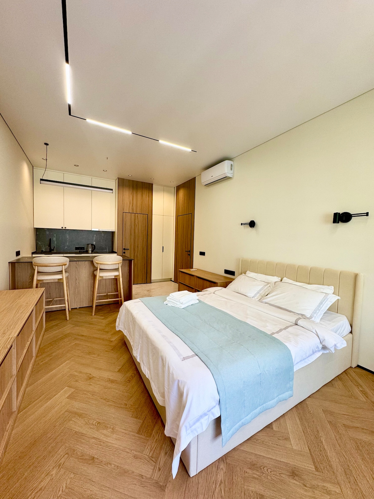 Die Wohnanlage 4YOU ist eine Stadt in der Stadt, mit einer eigenen Wandergasse, mit einem eigenen „Arbat“ und ist wirklich das neue Zentrum der Stadt, das all ihre Pracht anzieht. Unsere Neo-Designer-Wohnung - ein Klassiker wird deinen Urlaubs- oder Geschäftstour zu einem Element des Komforts und der Gemütlichkeit geben.