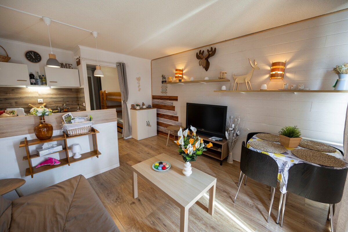 Vermietung 2-Zimmer-Maisonette 5 Betten für Woche, Wochenende, Brückentage im Mai oder November, Schulferien Sommer/ Winter und außerhalb der Saison. Der gesamte Aufenthalt kann zu Fuß erfolgen, da alles in der Nähe ist und kostenlose Busse mit einer Haltestelle davor in der Saison zur Verfügung stehen. Kostenlose Parkplätze. Zahlreiche Schneeschuhwanderungen, Wanderungen oder Mountainbike-Touren. Die Wohnung befindet sich neben der Ludothek, die es Ihnen ermöglicht, mit der Familie oder Freunden mit den vielen Spielen, die sie hat, Spaß zu haben.
