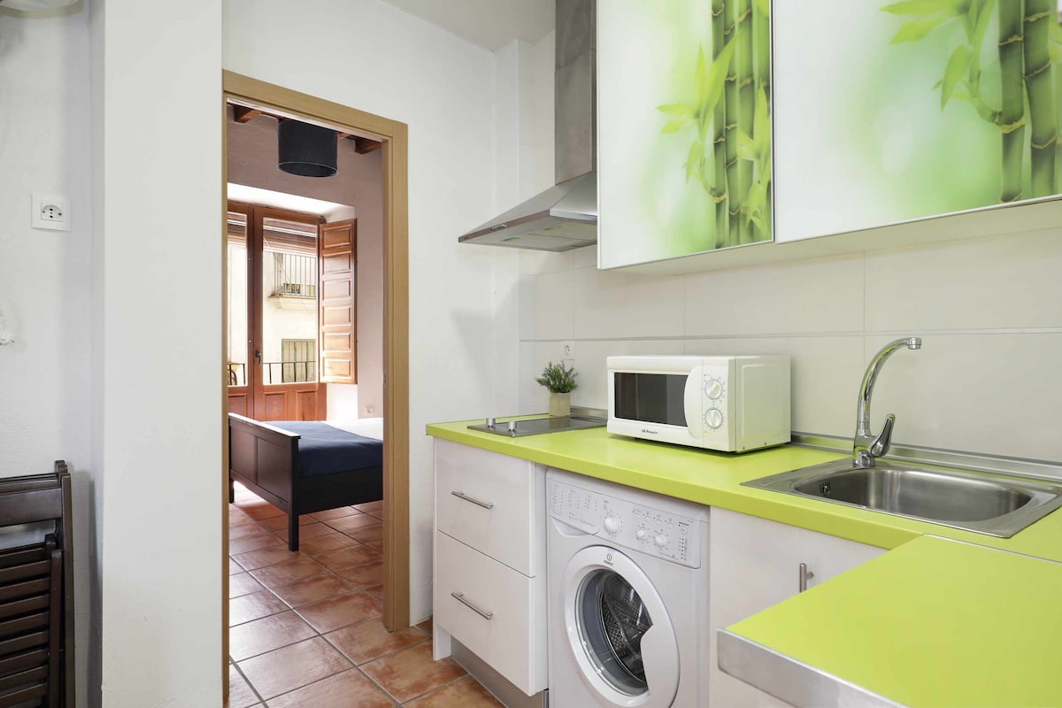 This comfortable apartment offers 51 m² of space for up to 4 people. Its bedroom with a double bed (150x200), living room with a sofabed (160x200), and modern bathroom with standard or accessible shower make this stay a perfect way to experience Granada. It also offers a fully equipped kitchen with sustainable coffee and tea and a washing machine, so you’ll have everything you need for maximum comfort and minimal stress.