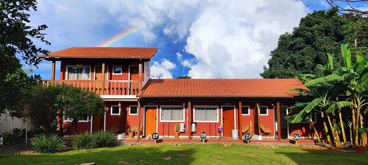 Rustikale und gemütliche Cottages mit beheiztem Pool, Frühstück inklusive, Garten, WLAN und Zugang zu einem kristallklaren Fluss. Nur 200 m vom Raizama-Wasserfall, 11 km von Vale da Lua – berühmt für seine Felsformationen, die der Mondoberfläche ähneln – und 3 km von Vila de São Jorge entfernt, wo sich der Eingang zum Nationalpark Chapada dos Veadeiros befindet, einem Cerrado-Refugium, reich an Schönheit und Artenvielfalt. Ideal zum Entspannen, Erkunden von Wanderwegen und Genießen mit Freunden, Familie und Haustieren.