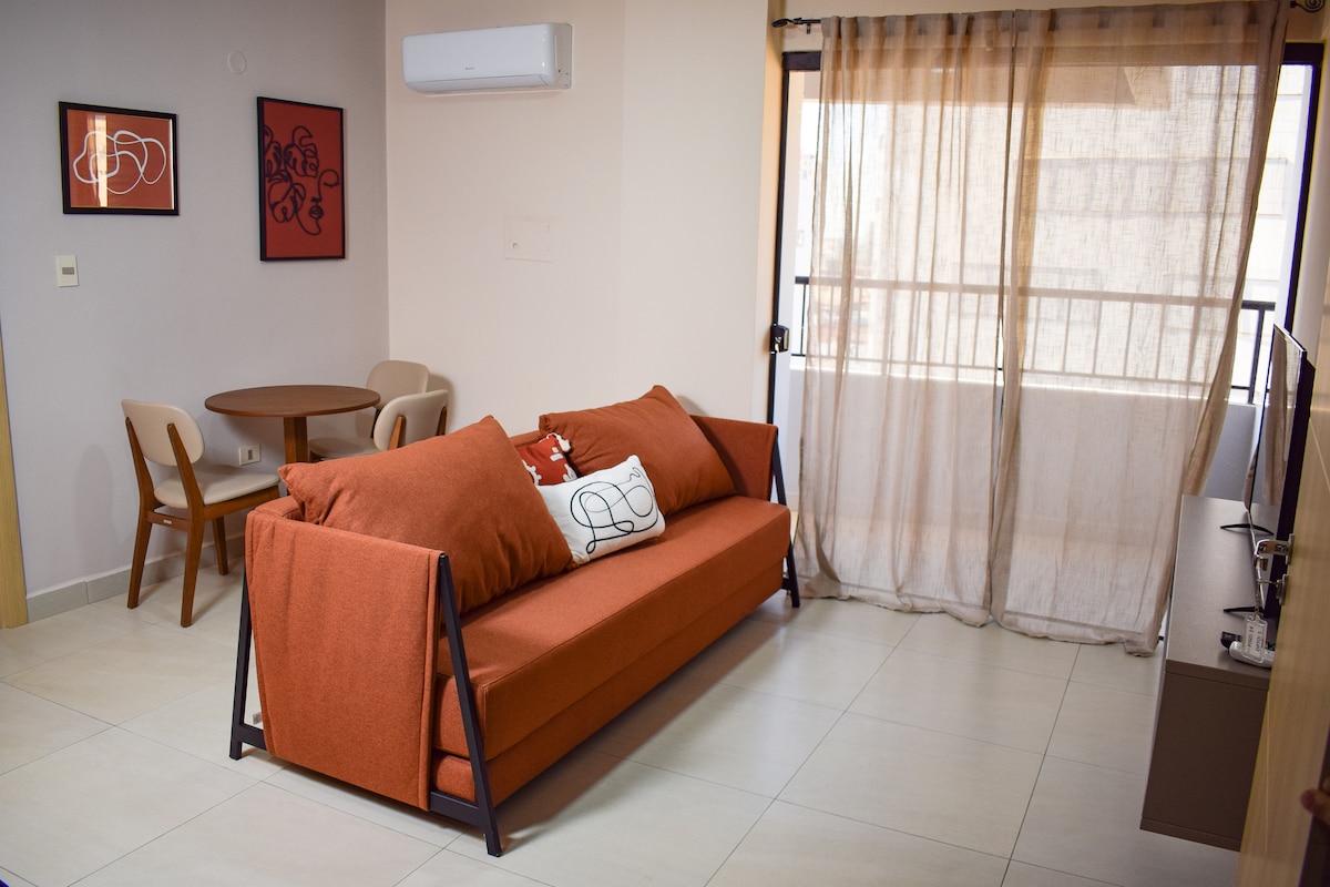 Disfrutá de una estadía cómoda y sin complicaciones en este departamento estratégicamente ubicado en la avenida San José de Ciudad del Este, con fácil acceso a los principales puntos comerciales, gastronómicos de la ciudad. El alojamiento está pensado tanto para viajes de descanso como de trabajo, ofreciendo internet, ideal para streaming, home office o videollamadas. Además, incluye cuenta de Netflix, para que puedas disfrutar de tus series y películas favoritas.
