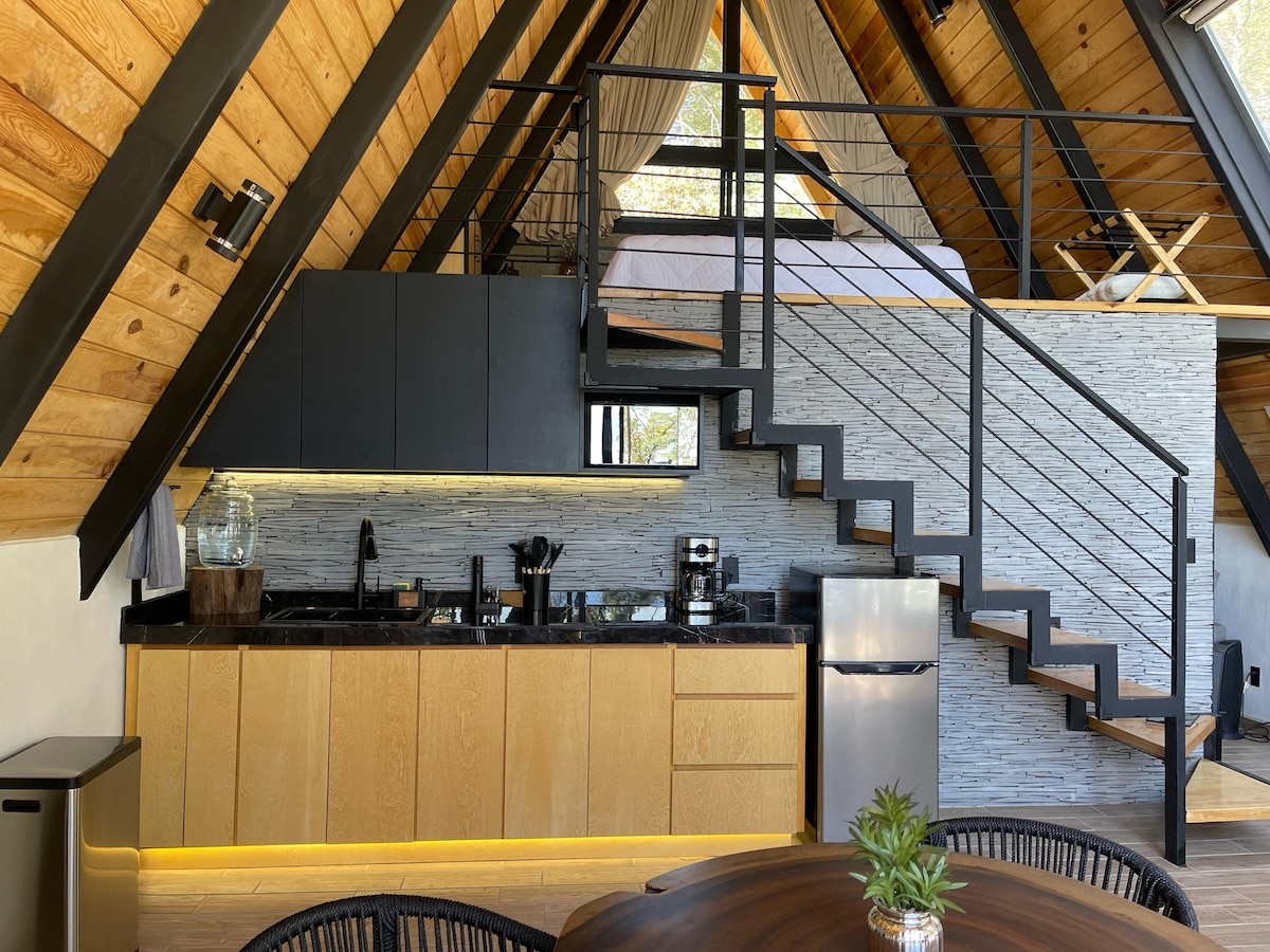 Tu refugio en Tapalpa A solo 600 metros de la plaza principal y la icónica iglesia, disfruta de comodidad, privacidad y la ventaja de caminar a tiendas, panaderías, carnicerías y más. Vive el encanto de este Pueblo Mágico sin depender del coche. El Espacio 1 recámara con cama King Size y baño completo. Sala con sofá cama para 2 adultos y otro baño completo. Clima controlado con minisplits frío/calor en recámara y sala. Decoración industrial y cortinas blackout en toda la casa.