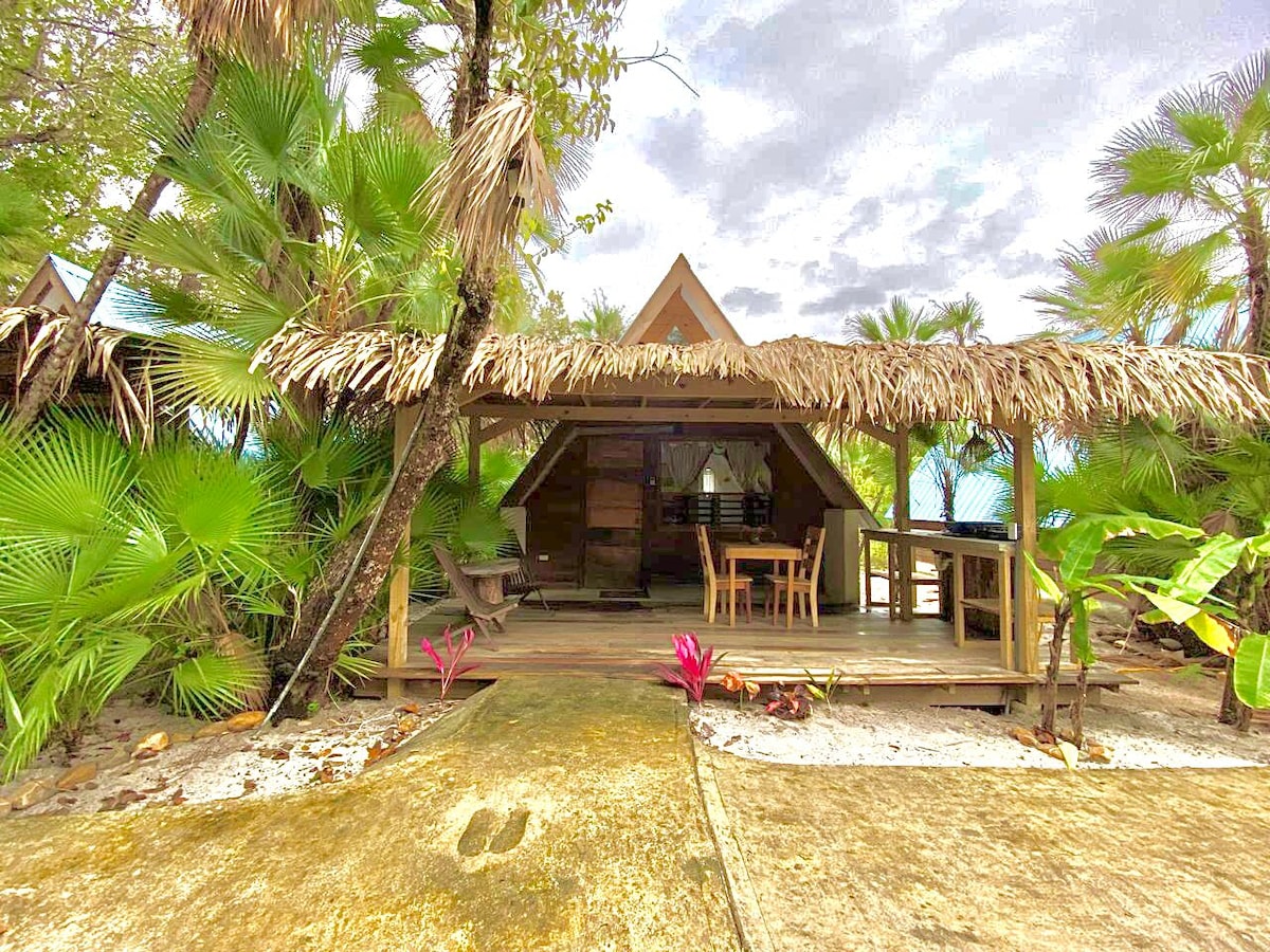 Direkt am Strand – Kuknat Strandhütte auf Stelzen im Dorf – perfekte Lage und tolle Aussicht in einer ruhigen und sicheren Gegend – von hier aus kannst du in 1 Minute zu Fuß zum Supermarkt, Geldautomaten, zur Apotheke, zu Bars oder zum Beach Club mit Swimmingpool gehen! Genieße das tropische Inselleben, trinke deinen Cocktail in der Hängematte auf der Veranda, tauche am Riff, mach ein Nickerchen in der Klimaanlage, wandere im Jaguar-Reservat, beobachte die Sterne auf deinem privaten Strandabschnitt … hier ist dein perfekter Ort! Kein Zugang zum Ohana-Swimmingpool