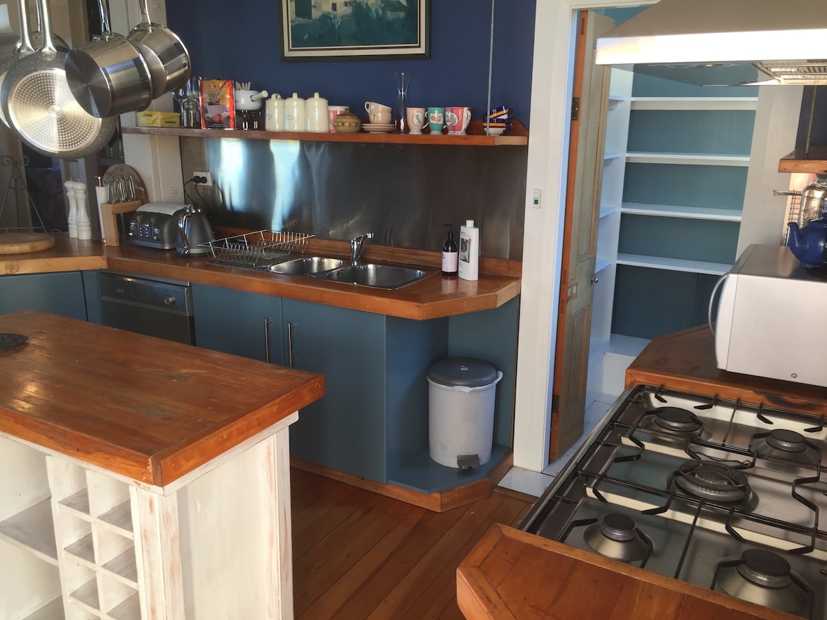 Lehne dich zurück und entspanne dich – in dieser ruhigen, stilvollen Unterkunft am Ende einer privaten Gasse. Das Haus ist über eine Außentreppe zugänglich und in zwei Bereiche aufgeteilt, die durch eine Außenterrasse miteinander verbunden sind. Hohe Decken und Holzwände schaffen ein warmes, bach-ähnliches Interieur mit großen Deckenventilatoren in jedem Zimmer und einem Holzofenfeuer. Glasschieber öffnen sich zu einer dramatischen Aussicht auf den Hafen und die Hügel. Genieße einen Drink oder ein Barbecue auf der großen Terrasse oder entspanne dich bei einem heißen Bad im Freien. Nur 5 Gehminuten vom örtlichen Supermarkt und der Brauerei entfernt.