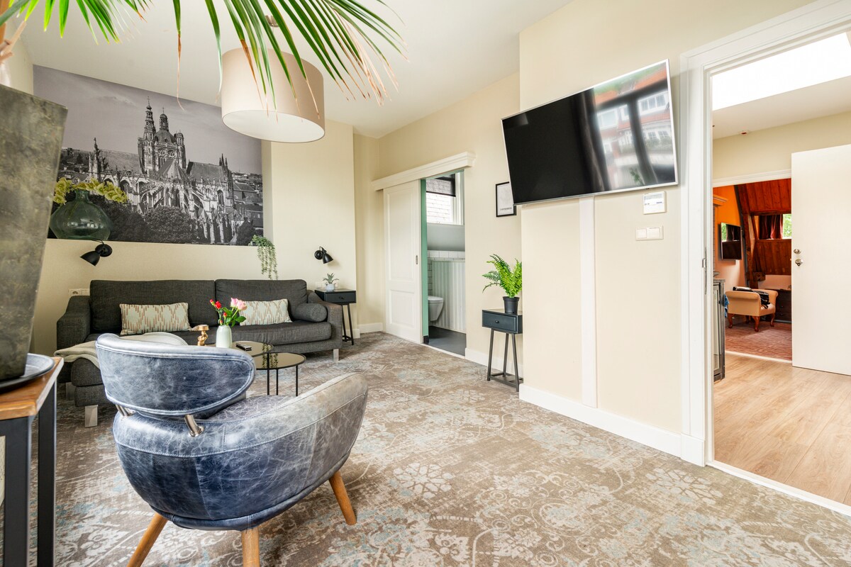 In the heart of 's-Hertogenbosch ("Den Bosch"), we offer you a luxurious stay in our beautifully renovated, 15th century house, named the "Gulden Engel"! You will stay in our delightful guest room on the ground floor, with a superb king-size bed. Under the goose down you will never be too hot or cold. Enjoy a (complimentary) drink in your own little back garden. Within 300 feet you can dine on Michelin stars or enjoy the famous Dutch kroket! Anything is possible in Den Bosch!