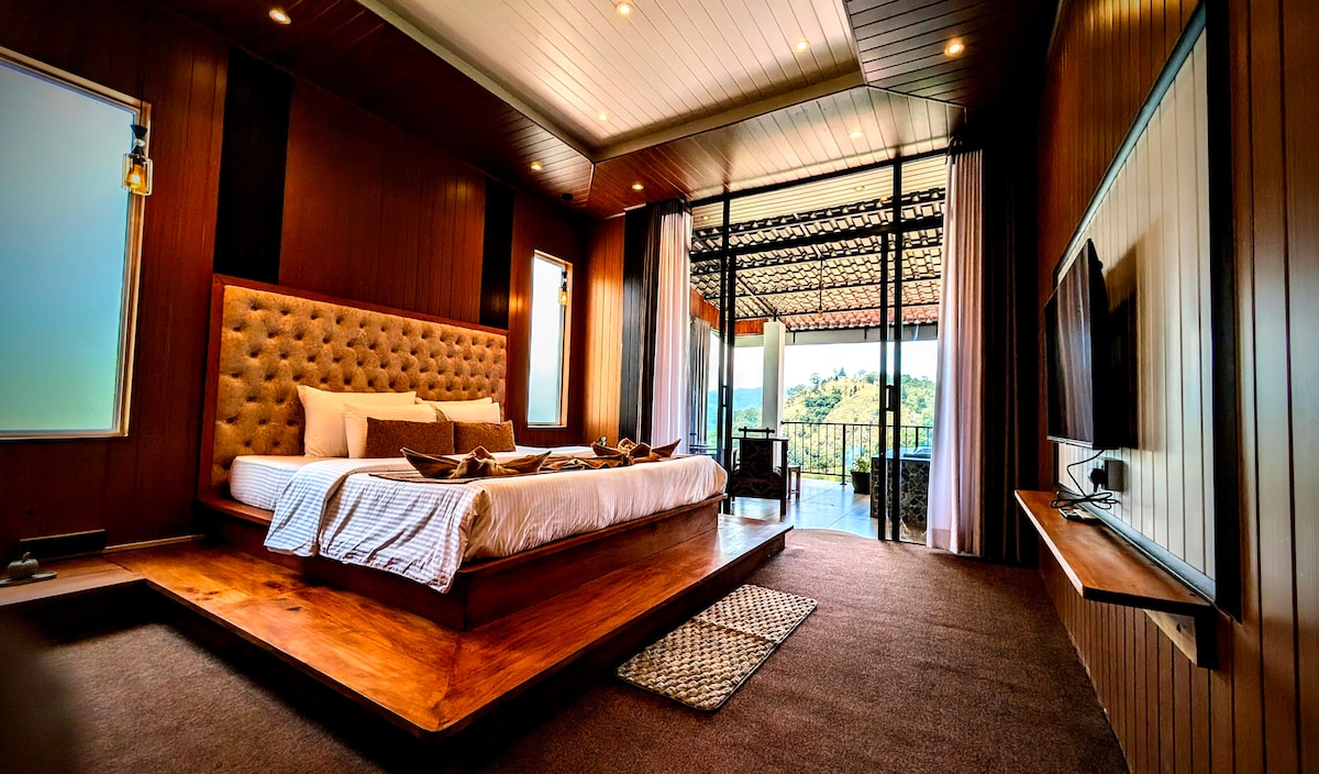 This Mountain View Double Room features a private balcony with a hot tub, perfect for unwinding while enjoying breathtaking views of Ella’s mountains. The room includes a separate indoor bathroom for full privacy and comfort. With a cozy double bed, modern amenities, and serene surroundings, it’s ideal for couples or travelers seeking a peaceful and luxurious stay immersed in nature. Relax, soak, and enjoy unforgettable moments in a scenic retreat. rainbow sky cottages