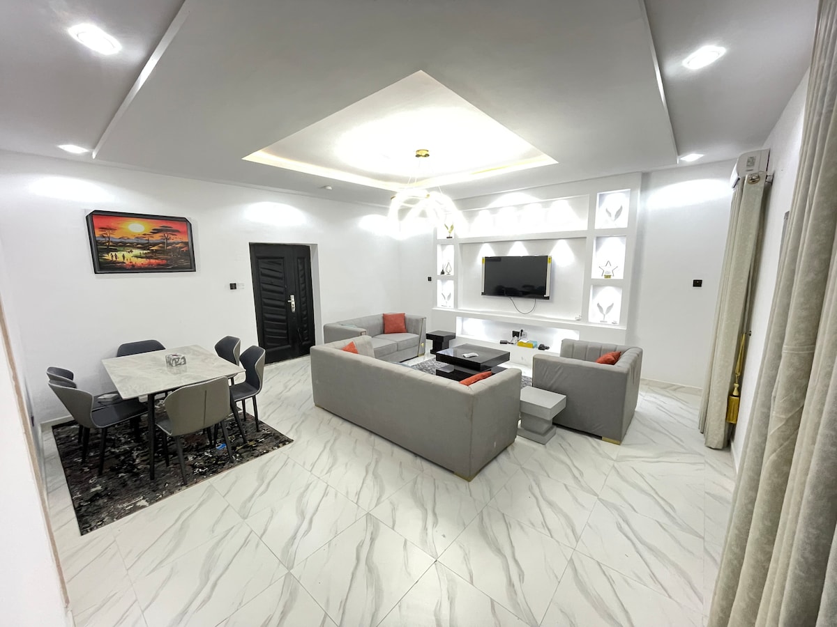 Check in & don’t worry about a thing!✨ This beautifully furnished and fully serviced 3Bedroom apartment is designed for ultimate comfort, privacy, and luxury. Each bedroom comes with a private en-suite bathroom, water heater, TV and ACs to ensure a pleasant stay. We guarantee 24/7 electricity for all appliances including all ACs. This peaceful property is located in a secure estate with 24/7 CCTV surveillance, on-site security, and a gated entrance with a security guard.