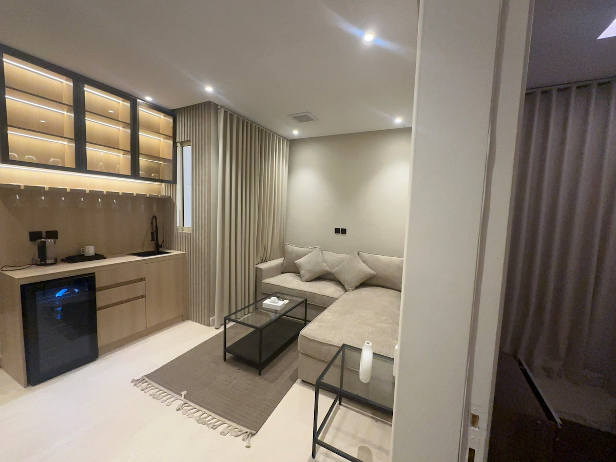 Luxus-Apartment nördlich von Riad Entworfen, um anders und stilvoll zu sein, mit einem Garten im Freien, Es hat absolute Privatsphäre und Selbsteintritt . Strategische Lage 📍 In der Ferne gelegen: 15 Autominuten von der Saison Riad entfernt.🌟 10 Minuten vom Riad-Park entfernt. 🛍️ 13 Minuten vom King Abdullah Financial Center entfernt. 🏙️ 18 Minuten vom internationalen Flughafen King Khalid entfernt.🛫 Es besteht aus einem amerikanischen Zimmer, einer Lounge, einer Küche und einem privaten Garten im Freien.