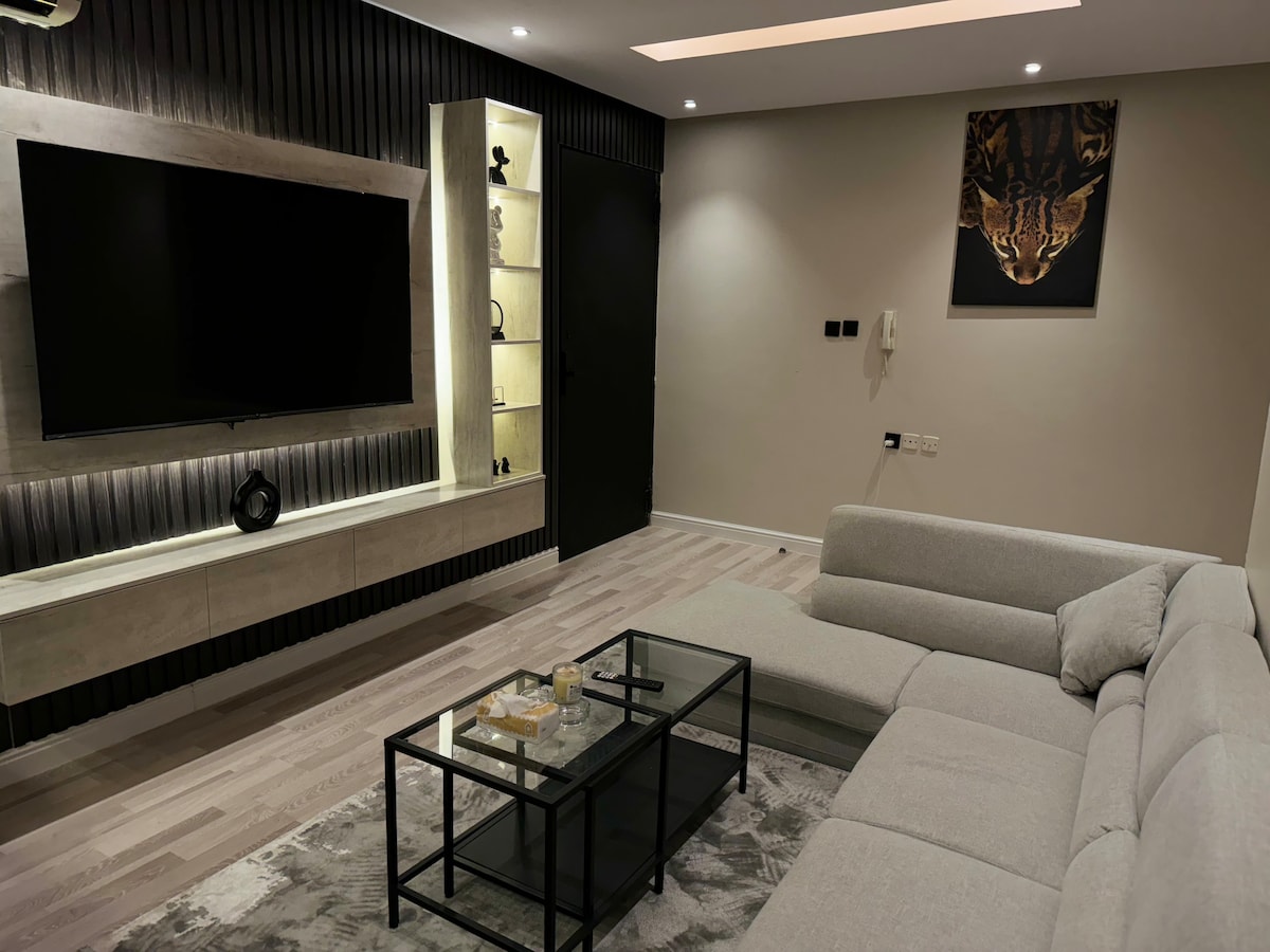 Willkommen in unserer Wohnung, die Ihnen einen außergewöhnlichen Aufenthalt bietet, der Ihre Erwartungen übertrifft. Die Wohnung verfügt über ein Schlafzimmer, das mit den besten Matratzen ausgestattet ist, sowie ein separates Wohnzimmer mit bequemen Sofas mit einem 65-Zoll-Smart-TV zum Genießen (Netflix, Shahid, BeIN) + WLAN. Die Küche ist komplett ausgestattet, um alle Ihre Bedürfnisse zu erfüllen. Es gibt einen Außenbereich mit ländlichem Design und einem einzigartigen Blick auf das Finanzzentrum, der sich für Veranstaltungen und Zusammenkünfte mit Familie und Freunden eignet. Die Wohnung ist für kurze und lange Aufenthalte ausgestattet. Die Lage ist wunderbar im Herzen der Stadt in der Nähe von Sehenswürdigkeiten, Dienstleistungen und Restaurants.