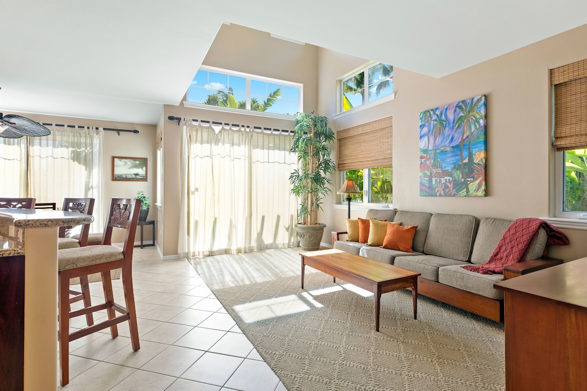 E Komo Mai – Willkommen auf Hawaii in der wunderschön eingerichteten Fairway Villas Eigentumswohnung im 2. Stock, die über eine Treppe oder einen Aufzug erreichbar ist. Genieße die Klimaanlage oder lass die Fenster für hawaiianische Brisen offen. Die malerische, nach Norden ausgerichtete Veranda ist immer schattig. Diese Eigentumswohnung mit 2 Schlafzimmern/2 Bädern bietet 4 private Schlafplätze. Es gibt ein großes Wohnzimmer, einen Essbereich und eine Küche mit allen notwendigen Annehmlichkeiten. Die Einheit ist 1.172 Quadratfuß groß. Ausgewiesener Parkplatz.