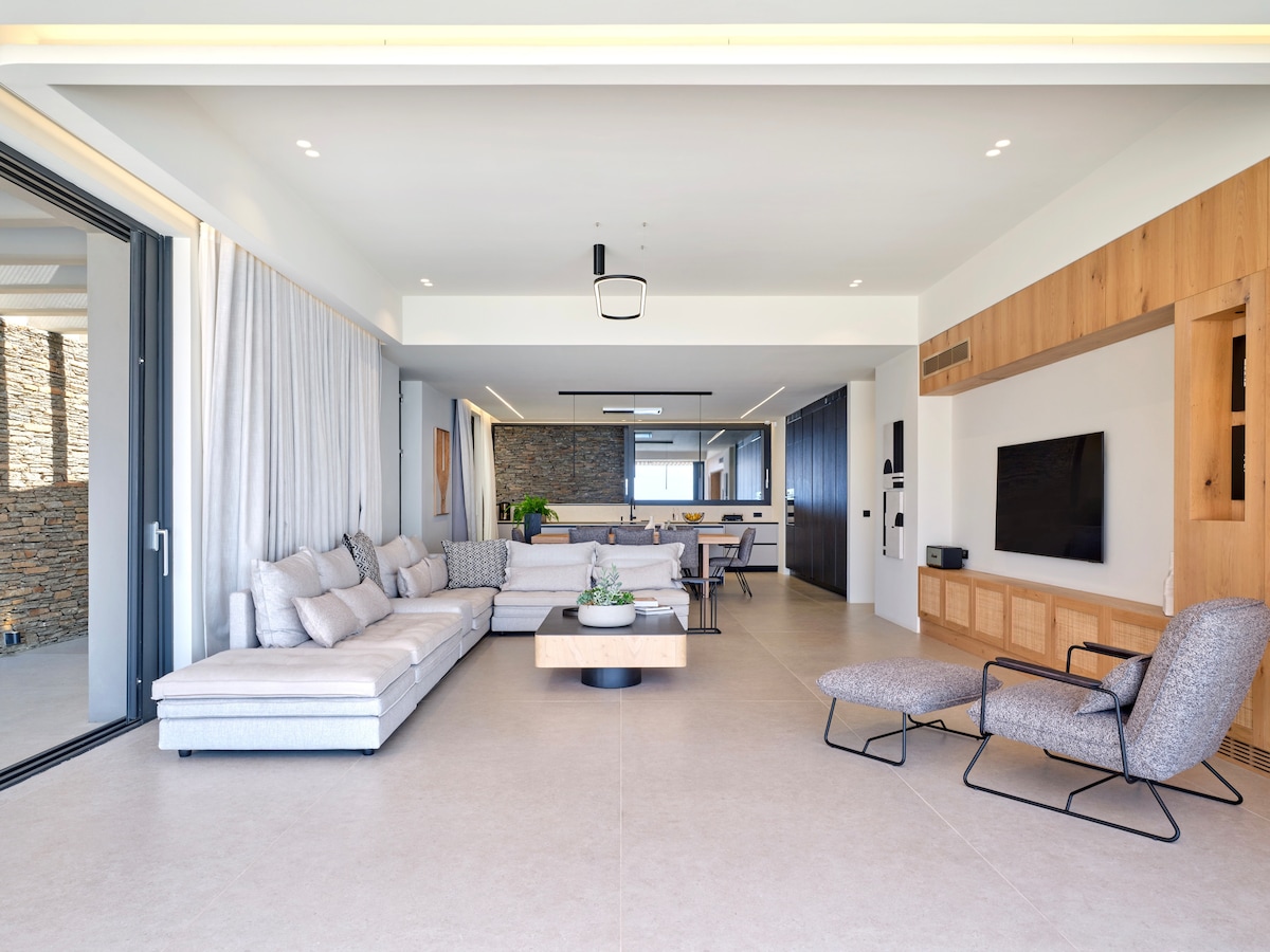 Discover Big Blue Villa I, part of the Big Blue Villas collection — the ultimate getaway at our luxurious seafront subterranean villas on the beautiful island of Andros, located on the serene Fellos Beach. With stunning panoramic Aegean views and unforgettable sunsets from every corner, the villas promise a tranquil escape just moments from the water’s edge. Designed for large groups, families or retreats, it is the perfect place for those seeking privacy and comfort in a truly unique setting.