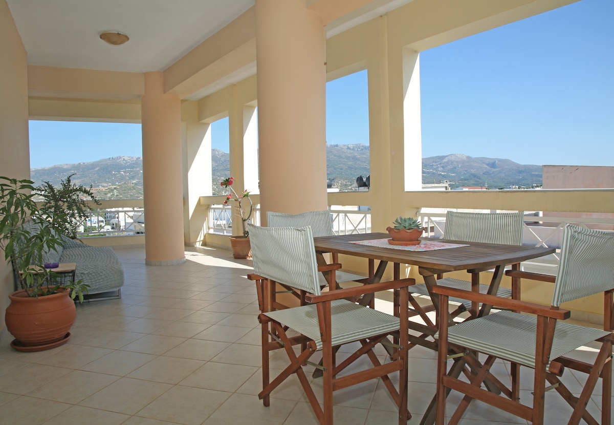 Die Wohnung im Erdgeschoss befindet sich nur einen Kilometer außerhalb der Stadt Sitia am Meer, in einer sehr ruhigen Gegend mit freiem Blick über die Bucht. Die Wohnung ist geräumig und modern mit einer voll ausgestatteten Küche, einem Essbereich und einem Wohnbereich mit einem bequemen Sofa und einem offenen Kamin. Jedes der beiden Schlafzimmer verfügt über ein Doppelbett und reichlich Platz im Kleiderschrank. Das Badezimmer verfügt über eine Dusche/WC.