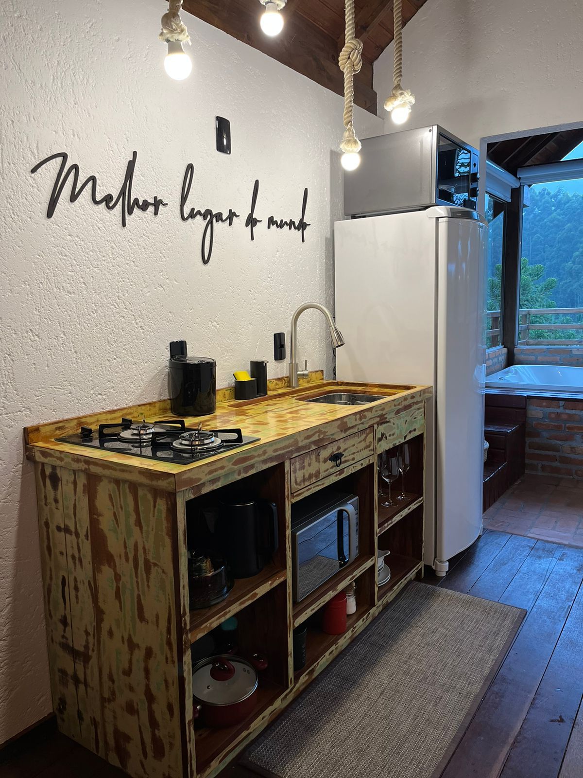 Chalé BelaVista - Refúgio na Serra Catarinense, bietet Gemütlichkeit und einen atemberaubenden Blick auf die jahrhundertealten Berge und Araucaria in Estância do Mica, Rancho Queimado - SC. Perfekt, um sich auszuruhen, die Natur zu genießen und frische Luft zu genießen. Sie verfügt über eine Badewanne/Hydromassage, einen Panoramabalkon, einen Kamin, bequeme Betten und eine ausgestattete Küche. Wir haben Reit- und Nutztiere, ideal für Paare und Familien. Verfügbares WLAN und Haustiere sind willkommen. Buche und lebe unvergessliche Momente!