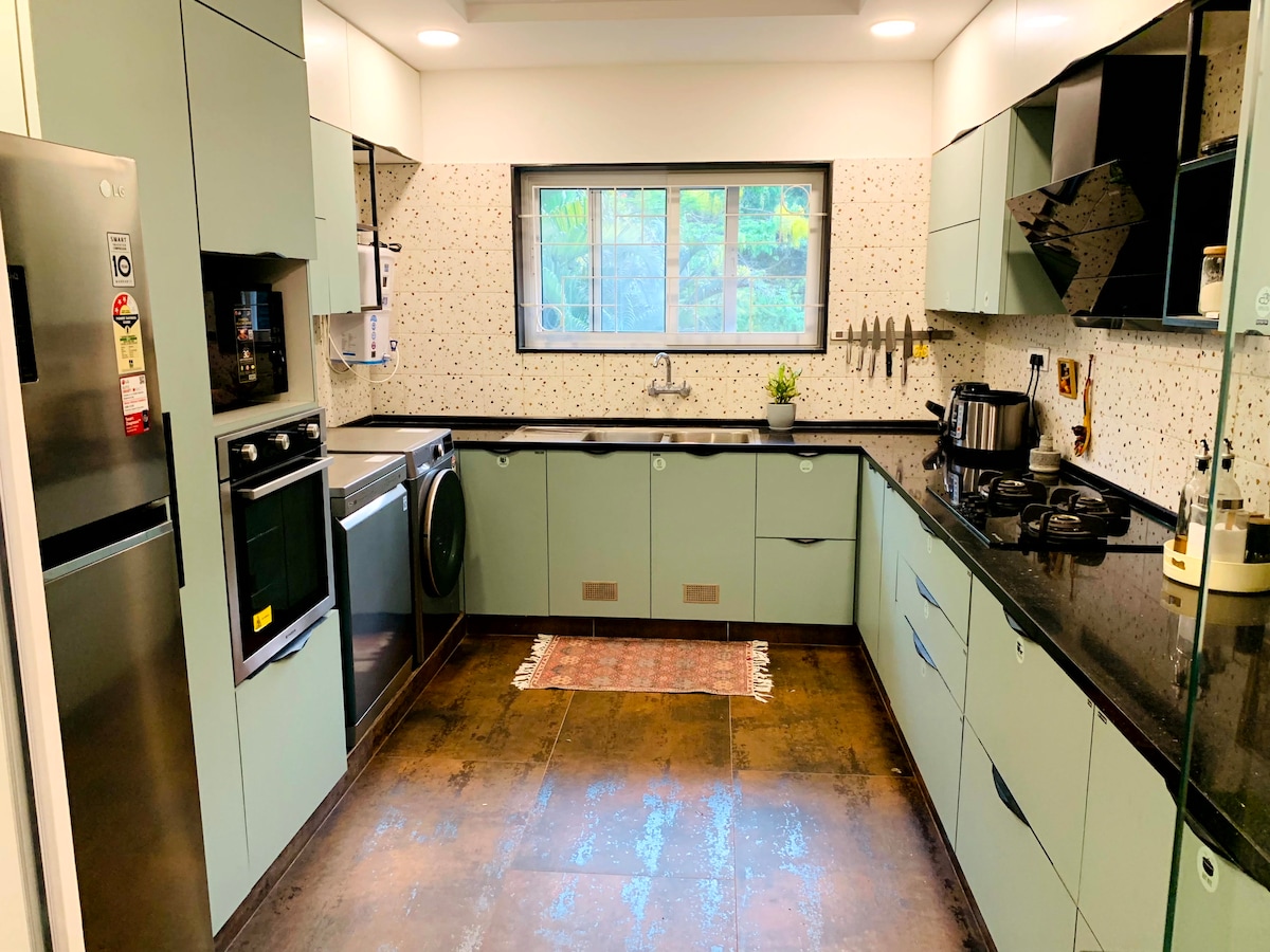 This centrally located haven grants effortless access to all amenities for your entire group. Step into a realm of clean, elegant ,stunning and LUXURIOUS SUITE,featuring an expansive attached bathroom. Stay productive and comfortable with a separate spacious work desk. Beyond lies a tranquil oasis: a 600 sqft open GARDEN PENTHOUSE, offering serene relaxation amidst calm and verdant surroundings. Kindly uphold the esteemed ambiance of the premises and foster an eco-friendly atmosphere.