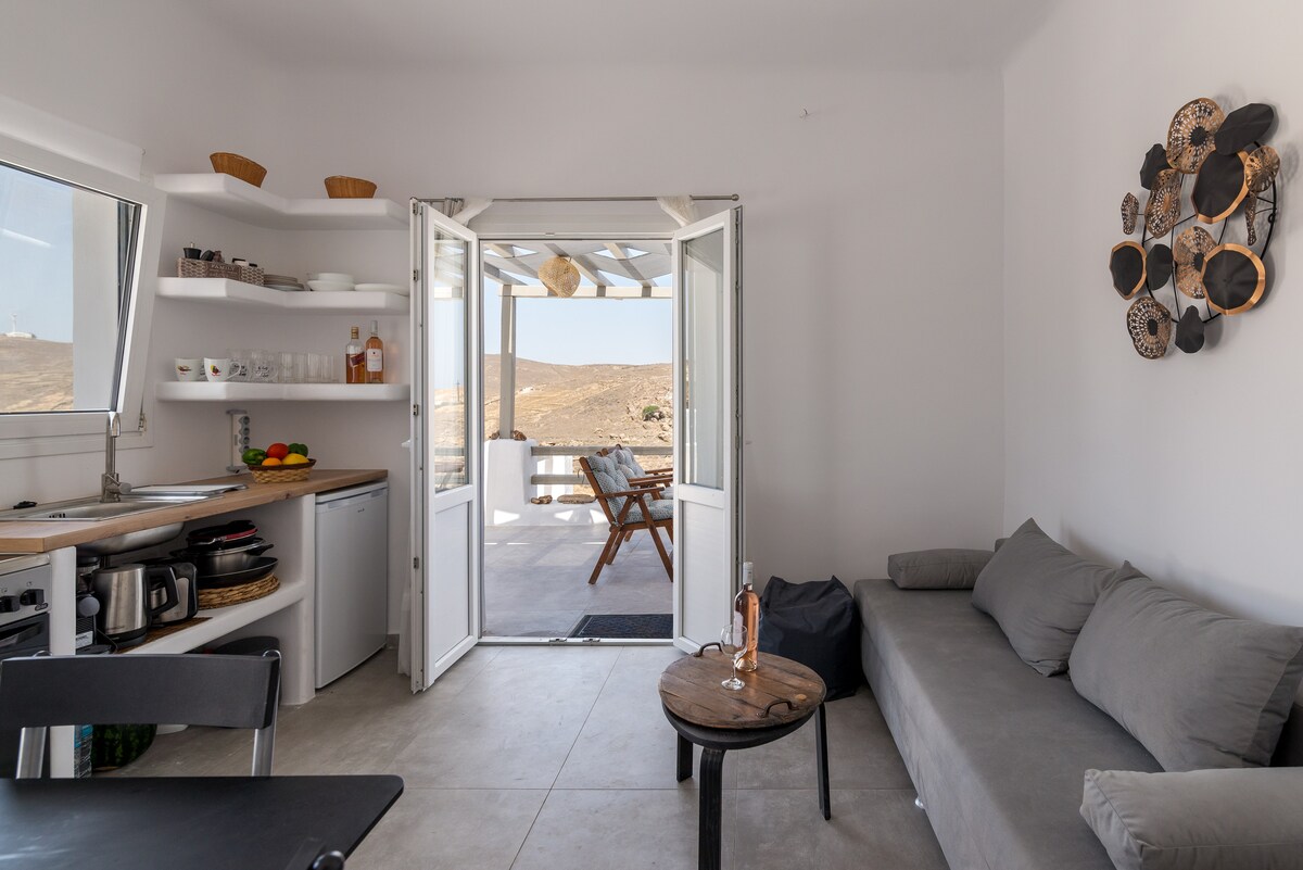Studio apartment with all the essential amenities and at the best possible location! Heart of Mykonos town but on a quiet alley! All major attractions (windmills, little Venice, Old port), all necessities (markets, buses, taxis, ATMs) and all the fun (restaurants, sunset bars, night clubs and the small beach of town) are all just a few minutes walk!!!