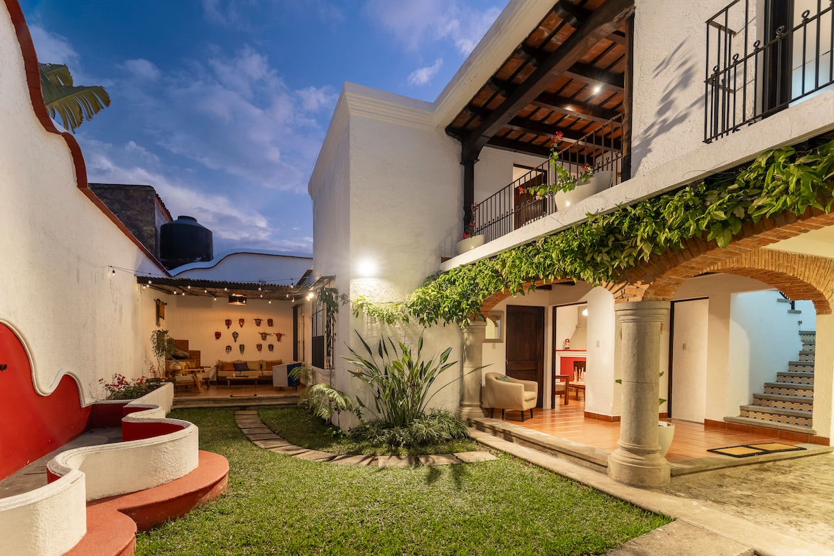 Gönne dir Luxus und Ruhe in unserem geräumigen Haus mit 3 Schlafzimmern und 5 1/2 Badezimmern, das einen atemberaubenden Blick auf den Vulkan bietet. Dieses historische, 300 Jahre alte Haus bietet bequem Platz für bis zu 10 Gäste und verfügt über ursprünglichen Charme, eine spanische Terrasse sowie einen Innen- und Außengarten. Mach es dir am Kamin gemütlich und genieße das einzigartige Erlebnis, nur zwei Blocks vom zentralen Park und einen Block vom Mercado de Artesanias entfernt. Dein unvergesslicher Kurzurlaub erwartet dich – buche jetzt deinen Aufenthalt!