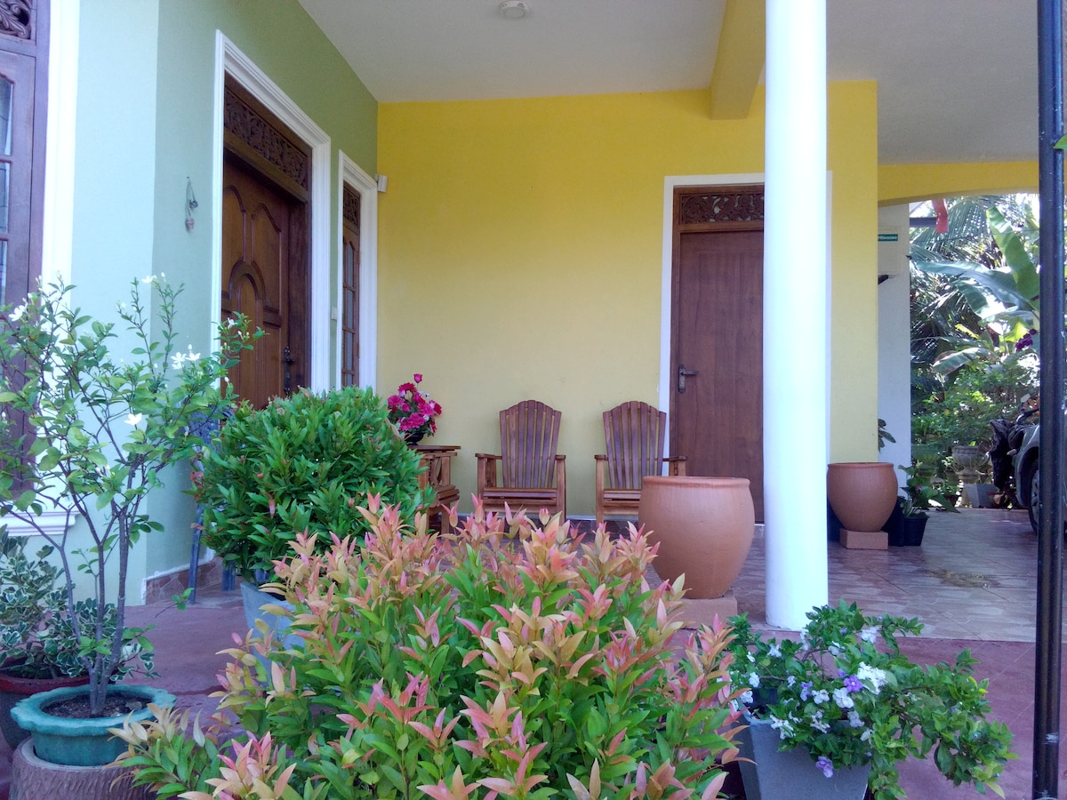 Willkommen in meinem charaktervollen Herrenhaus, in dem das koloniale Erbe auf srilankische Wärme trifft. Dein makelloses, klimatisiertes Zimmer mit eigenem Bad bietet einen ruhigen Rückzugsort in der Nähe der antiken Stadt. Entspanne dich in unserem farbenfrohen Wohnzimmer mit traditionellen geschnitzten Möbeln, lebendigen Kissen und antiken Stücken. Starte mit einem kostenlosen Frühstück in den Tag. Erkunde die Unterkunft mit dem Fahrrad oder Tuk-Tuks. Ich kann Flughafentransfers und Wilpattu-Safaris mit vertrauenswürdigen Fahrern arrangieren. Superhost seit 2016!