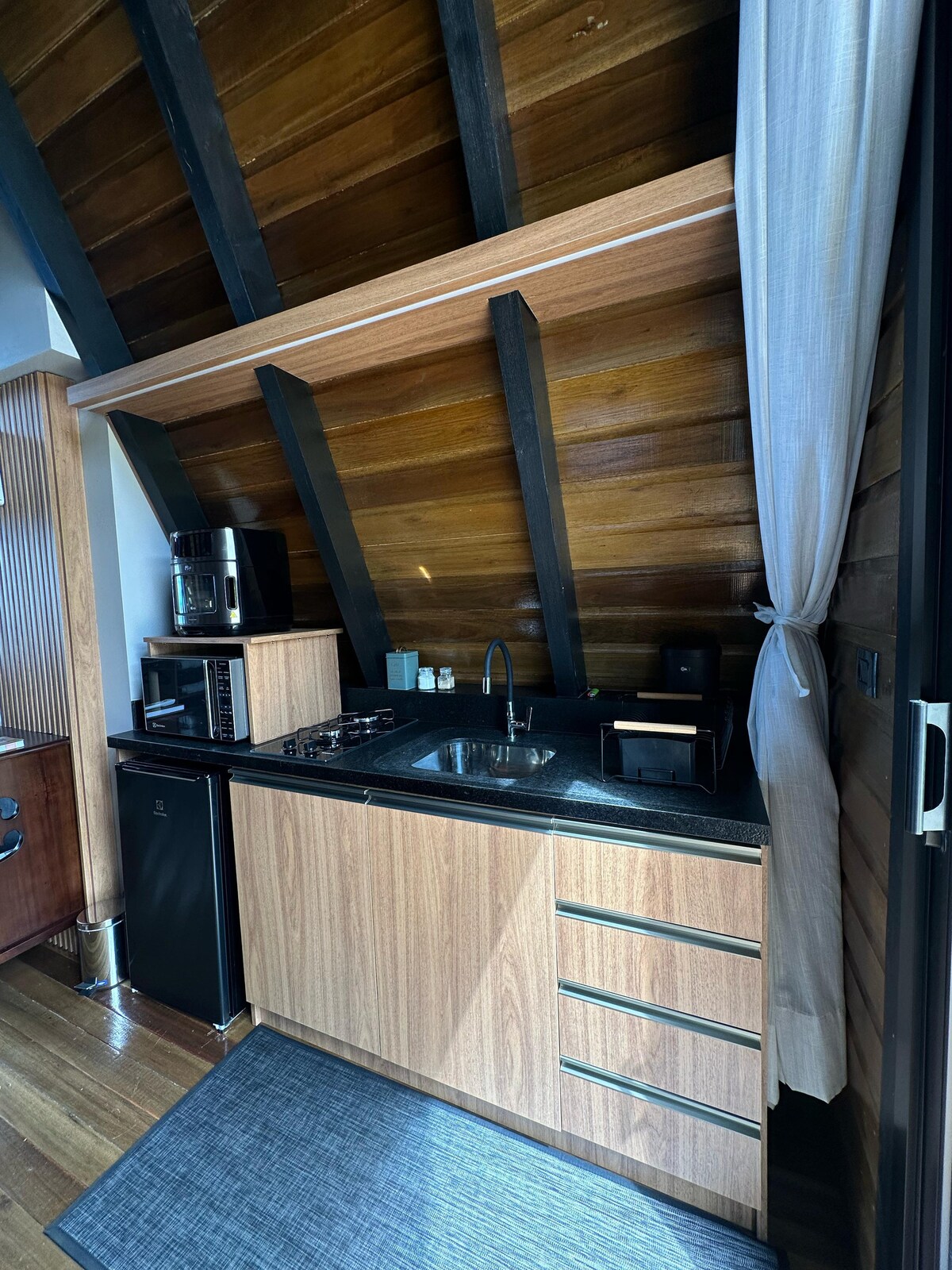Relaxe neste lugar único, aconchegante e tranquilo, em meio à natureza. Nosso Bangalô Sonho está localizado na área rural, distante apenas a 4,5 km do centro da cidade. O espaço possui cama queen, SmartTV 32", ar condicionado inverter, secador de cabelo, chuveiro a gás, torneiras com água quente, cozinha equipada com frigobar, microondas, cooktop, torradeira, chaleira elétrica e utensílios domésticos. Temos Wi-Fi. As paredes têm isolamento térmico. Não são permitidos Pet e churrasqueira.