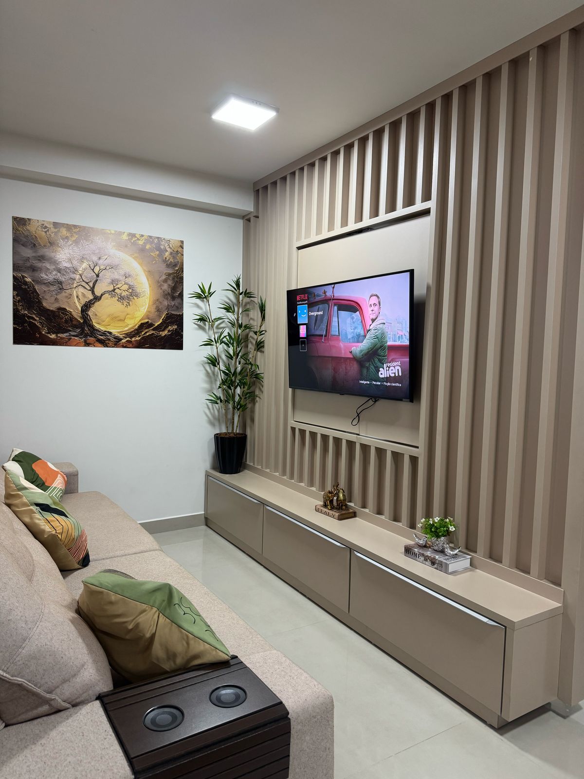 Das Flat hat eine Architektur, die von einem der renommiertesten Profis in Goiânia entworfen wurde. Die Idee ist, dass Sie sich während Ihres Aufenthalts wie zu Hause fühlen können. Alles ist automatisiert; Lichter, Vorhang, TV, Klimaanlage, die Komfort und Raffinesse bieten, fragen Sie einfach Alexa. Hören Sie Musik, sehen Sie sich mehr als 1.600 offene und geschlossene Kanäle an. Nehmen Sie ein angenehmes Bad mit einer großzügigen Dusche. Machen Sie Fotos und entspannen Sie sich auf der Veranda mit einem sensationellen Sonnenuntergang und einer Acryldecke.
