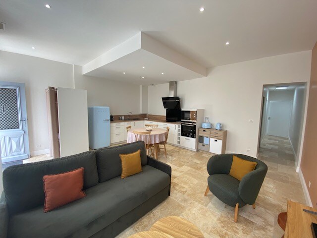 Gebäude aus dem 18. Jahrhundert mit einer charmanten, unabhängigen Unterkunft von 35 m2, komplett renoviert mit einer Terrasse, um morgens einen Kaffee in der Sonne zu trinken. Das Studio ist um eine offene Küche mit einer Eichenbar mit Sitzecke und angeschlossenem TV herum organisiert. Das Zimmer mit Buletex-Bettwäsche und Steinbad. Sie werden ruhig sein, während Sie weniger als einen Kilometer von den Geschäften und Schwimmen in der Dordogne sind. In der Nähe der schönsten Dörfer Frankreichs, Schlösser und Gärten.