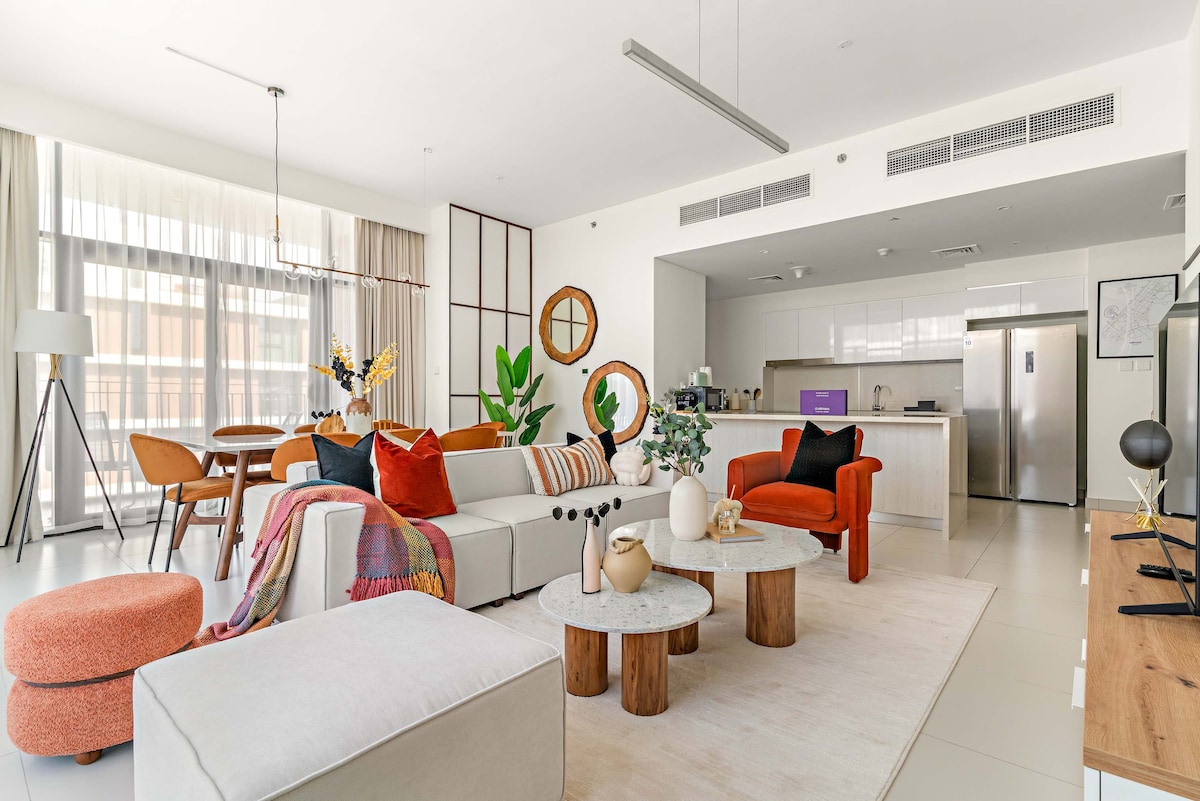 Willkommen in deinem hellen und trendigen 2BR in Collective, Dubai Hills! Dieses stilvolle Apartment bietet ein modernes Design, ein offenes Wohnzimmer und raumhohe Fenster für ein helles und luftiges Gefühl. Genieße die besten Annehmlichkeiten, darunter ein Pool, ein Fitnessstudio und Co-Working-Spaces. Die Dubai Hills Mall, Parks und Restaurants sind nur wenige Minuten entfernt und bieten die perfekte Mischung aus Entspannung und Komfort. Ganz gleich, ob du geschäftlich oder privat hier bist: Diese lebendige Unterkunft ist dein idealer Rückzugsort in Dubai. Jetzt buchen!