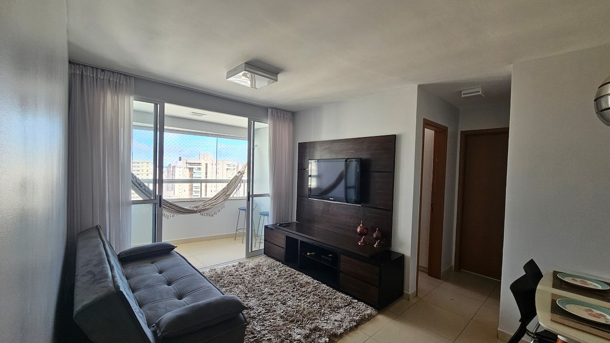 Encontrado no coração do Bueno e a poucos passos do Goiânia Shopping , este apartamento traz facilidade e conforto para aqueles que buscam uma estadia tranquila. Com 2 quartos com 3 camas no total e um sofá cama, permite a estadia de 5 pessoas de forma confortável, e se situa em um prédio super moderno que possui piscina, academia, lavanderia e área de coworking. Oferecemos roupa de cama, cobertores e toalhas aos nossos hóspedes para que não precisem se preocupar com nada durante a estadia.