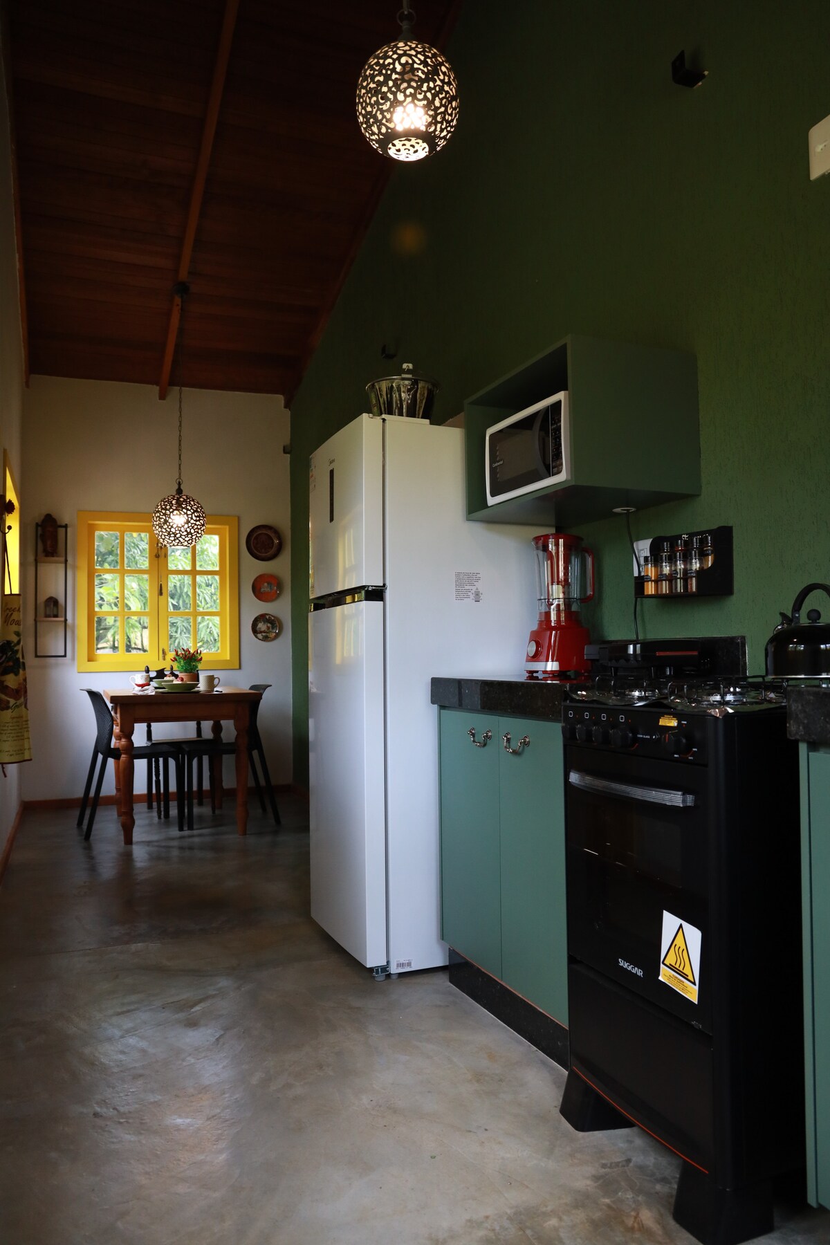 Das Mirante do Morro Velho ist das neueste und größte Chalet auf dem Gelände. Von der Veranda, neben dem Bistro, von einer gemütlichen Hollywoodschaukel oder sogar von unserer entspannenden Whirlpool-Badewanne aus können Sie die bezaubernde Aussicht auf das Cerrado und die Stadt Pirenópolis genießen. Die privaten Wasserfälle sind nur 150 m vom Chalet entfernt. Wir bieten Unterkunft für bis zu 4 Personen in einem Kingsize-Bett und einem Doppelbett. WLAN, Klimaanlage, Kabelfernsehen, eine voll ausgestattete Küche und ein eigener Parkplatz gehören zu den angebotenen Annehmlichkeiten.