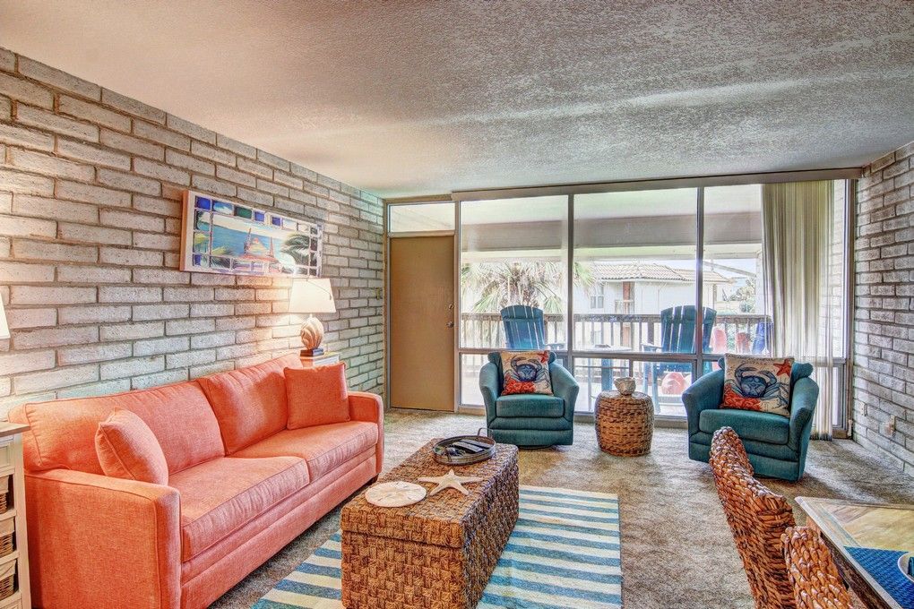 Sea Glass by the Beach liegt in günstiger Lage in der Golfwagenzone zwischen der 11th Street und dem Strand. Private Gemeinschaftspromenade für einen kurzen 5-minütigen Spaziergang zum Sand am Strandmarker 5. Genieße den Sonnenuntergang von unserer Terrasse auf der 1. Etage mit Blick auf den Gemeinschaftspool aus. Diese neu umgebaute Wohnung bietet eine voll ausgestattete Küche und den gleichen Komfort wie zuhause. Ein privates Schlafzimmer mit Kingsize-Bett und einem Schlafsofa sowie zwei voll ausgestattete Badezimmer machen dies zu einem großartigen Ort für Familien. Lizenz #009500