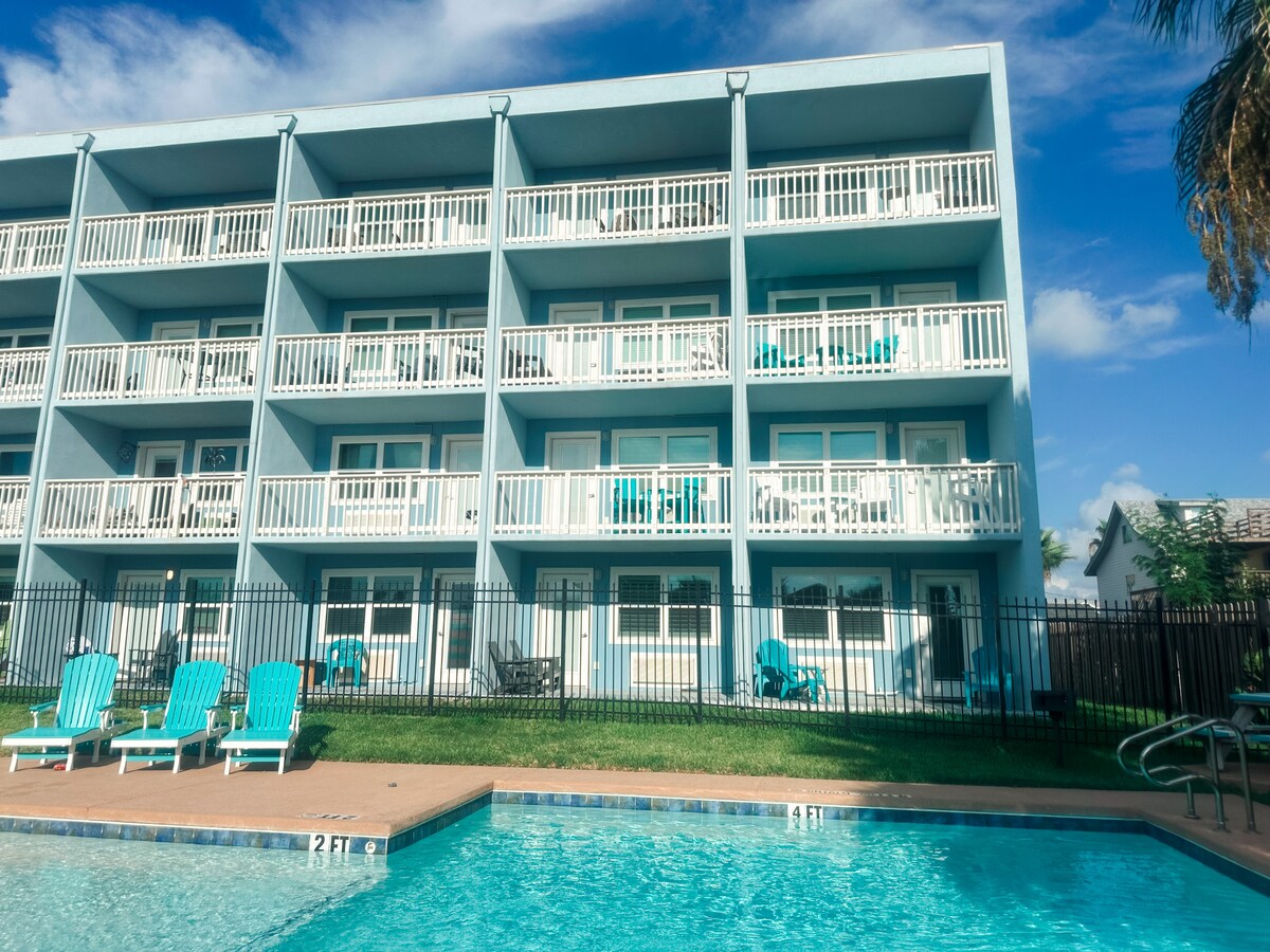 Suchst du nach einem ruhigen Rückzugsort? Unsere entspannende Studio-Wohnung im 2. Stock in Fulton, TX, ist der perfekte Ort zum Entspannen! Nur wenige Schritte vom Golf entfernt, kannst du den Pool, das Shuffleboard oder ein Kochen im Freien genießen, während du die atemberaubende Aussicht genießt! Das Zimmer verfügt über zwei komfortable Queensize-Betten und ein Schlafsofa. Die Küche ist mit allem ausgestattet, was du brauchst, um eine schnelle Mahlzeit zu kochen. Zu den weiteren Annehmlichkeiten gehören ein Kühlschrank, ein Schreibtisch, Spiele für die Kinder, eine Keurig, Handtücher und Shampoo. Eine kurze Fahrt nach Port Aransas und Corpus!
