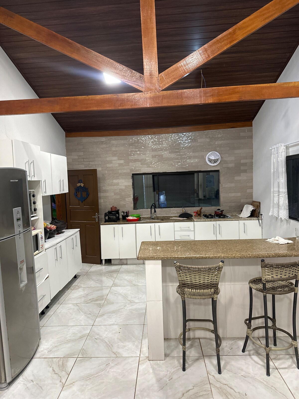 Entspanne dich in diesem ruhigen und gemütlichen Raum. Das Haus ist neu, Schlafzimmer mit maßgeschneiderten Möbeln, Doppelbett und Einzelbett, Klimaanlage, 55-Zoll-Fernseher. Küchenpraxis, mit Kühlschrank, Mikrowelle, Induktionsherd, Wasserhahn mit Filter und allen notwendigen Utensilien. Waschküche mit einfacher Waschmaschine, Tisch und Bügeleisen. Großes und modernes Badezimmer. Ampla Außenbereich mit Garage. Lage: 10 Min. Centro/Expoville (Hauptzugang), 12 Min. Centreventos Cau Hansen und 4 Min. Zugang BR