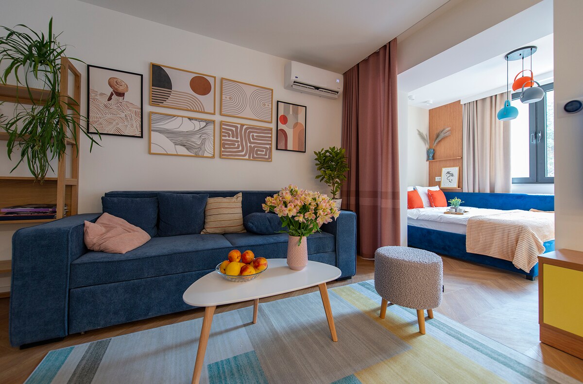 ☆ Willkommen bei „Melody“ von Hotelise: Wo bunte Wärme auf Premium-Komfort trifft. Eigenständiger Check-in ✓ täglich rund um die Uhr ✓ 1/5 Etage ✓ AC ✓ 38 m ² ✓ Großer Smart-Fernseher & IPTV ✓ Premium-Badezimmer /Premium-Fittings ✓ Premium-Möbel ✓ 160x190 ✓ High-Speed 200 Mbit WLAN ✓ Waschmaschine und Trockner ✓ Voll ausgestattete Küche /mit Geschirrspüler ✓ Luxuriöse Hotel-Toilettenartikel ✓ Frische Bettwäsche und flauschige Handtücher ☆Wohnung nebenan „Harmony“ für große Gruppen verfügbar ♥ Bei hotelise schaffen wir Erinnerungen für einen Aufenthalt nach dem anderen!