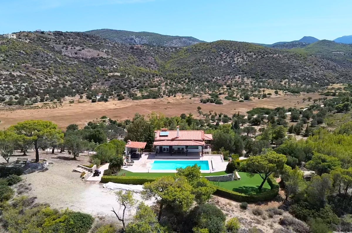 Luxuriöse Loutraki-Villa mit 4 Schlafzimmern und tollem Meerblick | Privater Pool & Garten Entfliehe der Ruhe in der Lahtagas Estate Villa, einem atemberaubenden Rückzugsort auf einem 25.000 m ² großen privaten Anwesen. Genieße einen atemberaubenden 360-Grad-Panoramablick auf die korinthische Bucht und den Peloponnes. Perfekt für Gruppen und Familien bis zu 9 Gäste, die ultimative Privatsphäre und Entspannung suchen. Nur eine kurze Fahrt von der Stadt Loutraki entfernt, hast du einfachen Zugang zu vielen Restaurants, Thermalbädern und schönen Stränden.