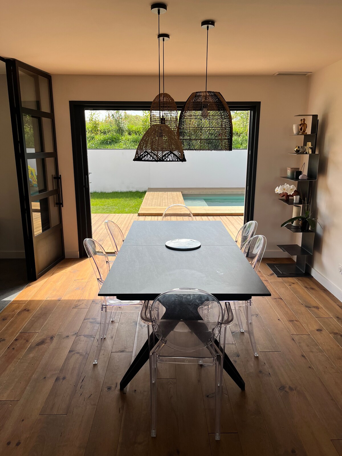 Spacieuse villa, lumineuse et chaleureuse, idéale pour des vacances en famille ou entre amis. Grandes baies vitrées à galandage, volumes ouverts et matériaux de qualité pour un confort premium. RDC : vaste séjour convivial, cuisine équipée, WC, suite parentale avec TV, dressing et salle de bain. Étage : deux chambres de 15m² avec dressing, mezzanine/bureau, salle de bain et WC. Piscine chauffée Gainable qui climatise ou chauffe toutes les pièces. Parking Gratuit 🛏️ Linge et draps fournis