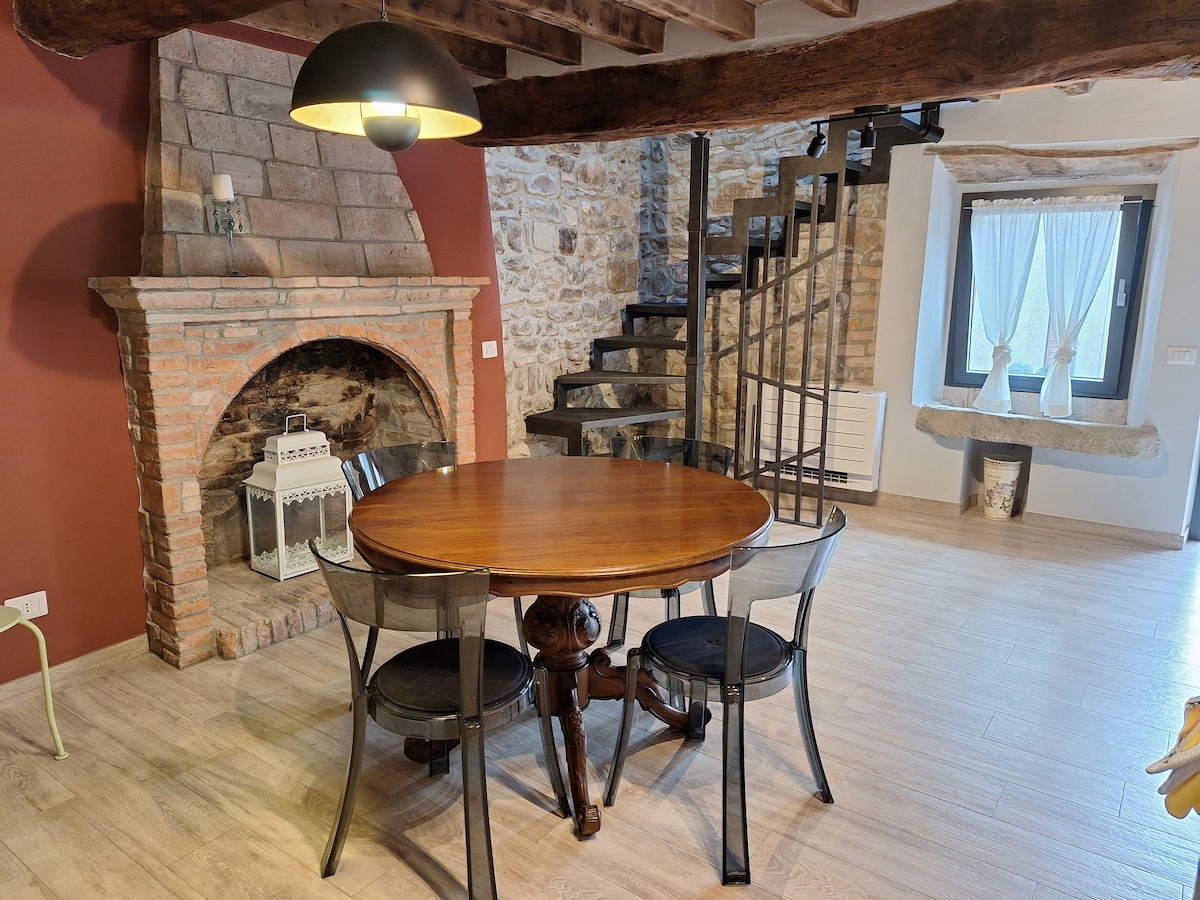 Typisches Landhaus mit Steinmauern und Holzdecken ist der ideale Rückzugsort für diejenigen, die einen erholsamen Urlaub inmitten der Natur nur wenige Schritte vom Dorfzentrum entfernt verbringen möchten. Bestehend aus Wohnzimmer mit Schlafsofa,Küche, 2 Schlafzimmern, Bad und einem großen, komplett eingezäunten Garten, ist eine Oase der Ruhe, in der Sie Momente der Ruhe und Entspannung genießen können. Auf Wunsch besteht die Möglichkeit, die Außenküche zu benutzen, um unvergessliche Grillabende zu organisieren und in einem spektakulären Holzofen zu kochen.