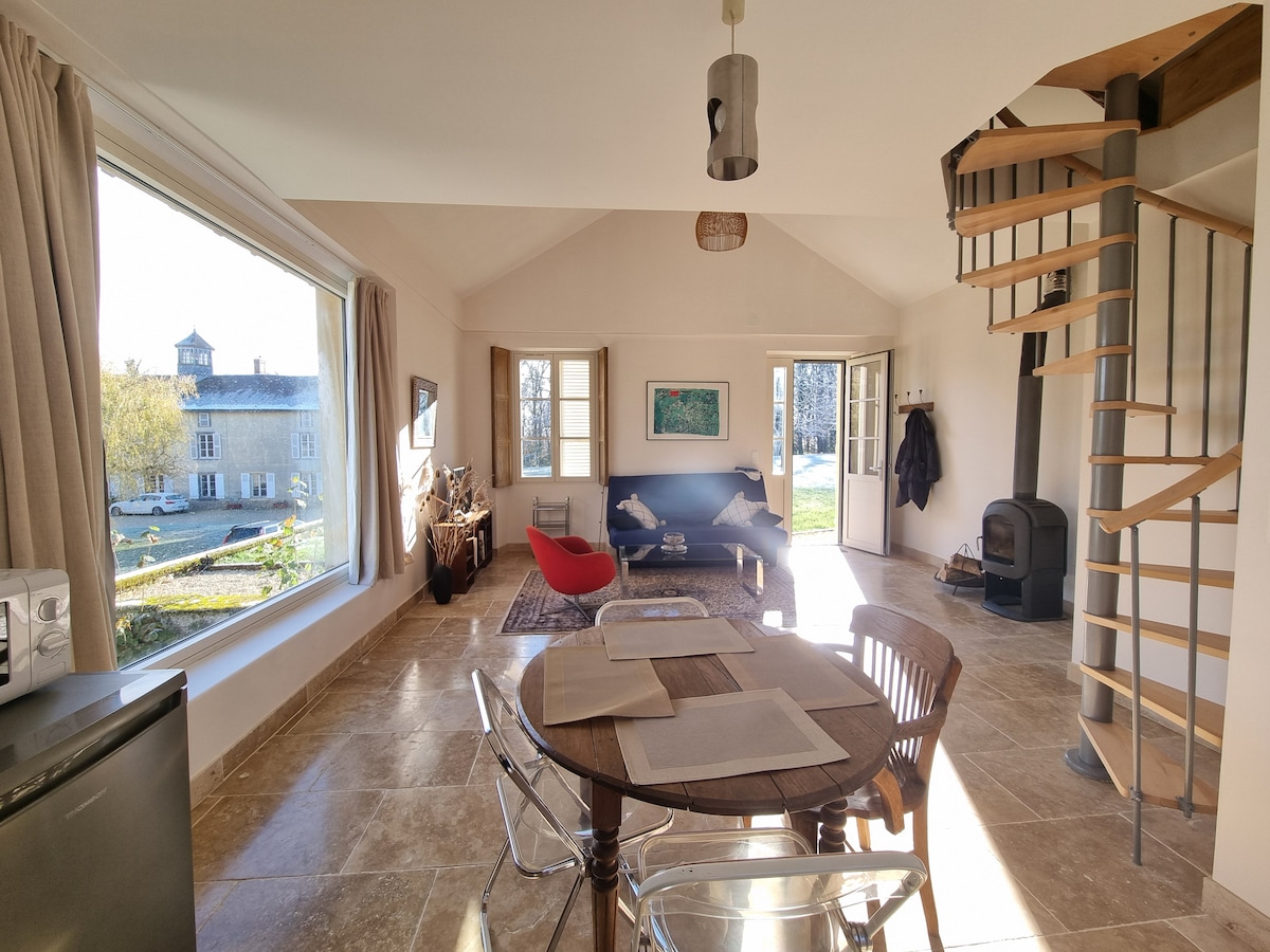 Logement entièrement rénové, cette dépendance au sein de notre corps de ferme conserve le cachet de l'ancien avec poutres apparentes dans une ambiance cosy et chaleureuse. Au cœur d'un village avec toutes commodités : boulangerie, boucherie charcuterie, supérette, pharmacie … Le logement offre de beaux volumes, avec cuisine équipée, 2 chambres, salle de bain avec douche et espace buanderie avec machine à laver. Bel espace extérieur aménagé et partagé en commun avec nos hôtes. Equipements bébé.
