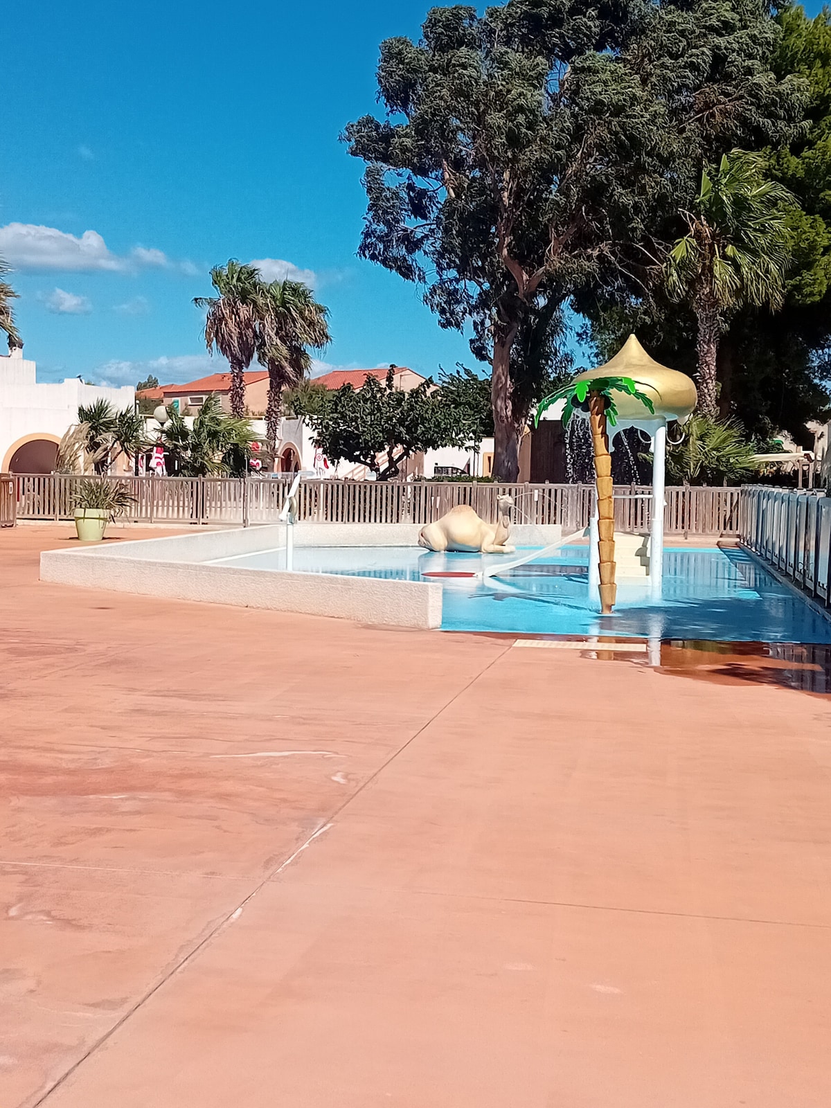 Ce camping de haute qualité est idéalement situé (plage, étang, commerces, centre de thalasso) comporte boulangerie, supérette, restaurants, coiffeur,docteur.Vue sur l’étang avec ses flamants roses et sur le mont Canigou,à 30 mn de l’Espagne,10 mn de la gare,de l’aéroport de Perpignan.De nombreuses activités, le club enfants 1-15 ans .Il a son parc aquatique piscine chauffée couverte, toboggans pistes de glisse,pataugeoire,SPA, splash, terrains pétanque ping-pong salle de sport aires de jeux.