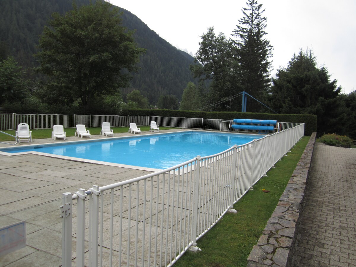 Kleines, komfortables Studio renoviert, kombiniert den Charme von altem Holz und modernem Komfort. Am Eingang des alten Dorfes neben der Arve gelegen. Private Parkplätze am Fuß des Gebäudes,autofreier Aufenthalt MÖGLICH, 5 Gehminuten zu Geschäften, Restaurants, Apotheke. 5 Minuten Zug und Bus KOSTENLOS mit Gästekarte. Busse und Züge bedienen alle umliegenden Dörfer, bis zur benachbarten Schweiz. Privater Skischrank. Aufzug. 10 Gehminuten von der Loipe und dem Start von Grands Montets entfernt