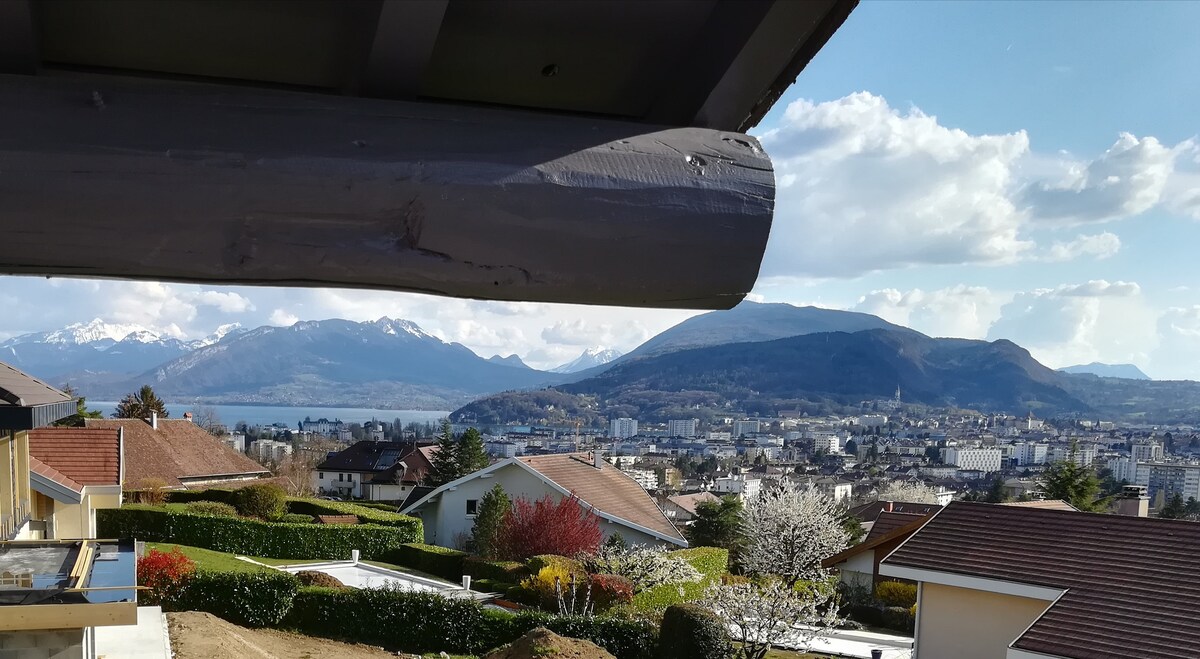 Appartement de 70m2 entièrement rénové, à l'étage d'une maison avec accès indépendant et parking privatif sécurisé. Quartier résidentiel calme, proche de toutes commodités (commerces, bus), idéal pour couple ou famille de 4 personnes. Appartement spacieux, avec balcon et vue sur les montagnes, la ville d'Annecy, le lac et les montagnes. Rénovation en septembre 2021. Les frais de ménage sont inclus dans le prix de la nuitée Numéro d'enregistrement : 74010 002345 BI
