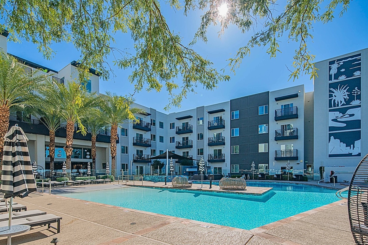 💛 Resort-style North Scottsdale vacation rental with heated pool 🏝️, spa hot tub 💦, full fitness center 🏋️♀️, rooftop sky deck 🌄 with BBQ grills 🍖 + sunset views, fast WiFi ⚡full kitchen 🍳, 2 king beds 👑Close to Fairmont Princess 🎀 (~1.5 mi) and TPC Scottsdale ⛳ (~3.1 mi), plus minutes to Kierland dining 🍽️, nightlife 🍸 & shopping 🛍️. ❣️Multiple units available for groups!❣️👉 Sonder cancellation guests: Message us before booking for an extra 10% off! 🎗️ The Palacio Properties