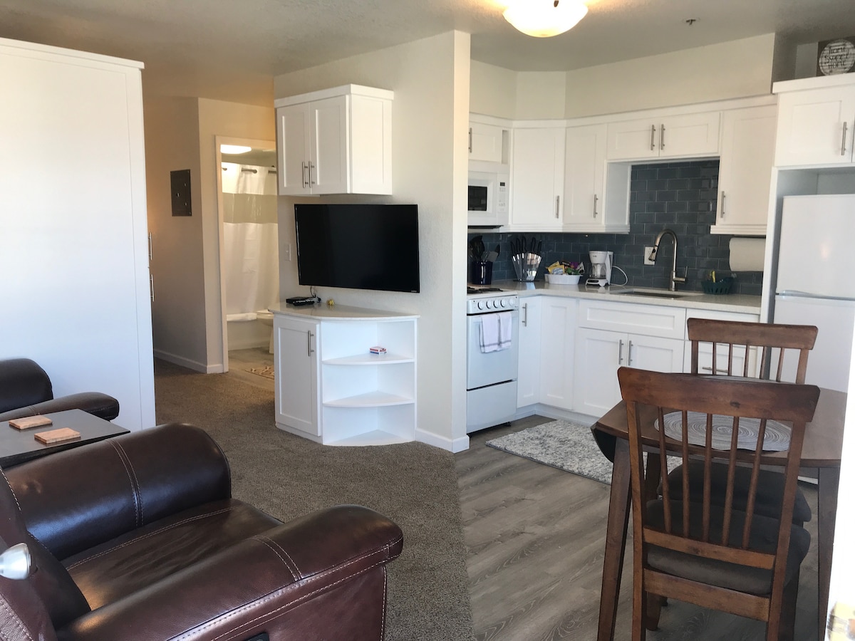Fühle dich in dieser gemütlichen Wohnung wie zu Hause, die nur wenige Gehminuten von Einkaufsmöglichkeiten, Restaurants und der Innenstadt von Prescott entfernt ist. Genieße ein gemütliches Schlafzimmer mit 2 Doppelbetten in einem Zimmer für 4 Personen. Diese Einheit ist mit einer modernen Küche, einem angrenzenden Wohnraum und 1 Schlafzimmer ausgestattet. Mit einem kleinen, eingezäunten Garten und einer ebenerdigen Dusche. Kostenloses Internet und DirecTV. Dies ist der perfekte Ort, um Prescotts historische Innenstadt, das berühmte Gerichtsgebäude, die Whiskey Row und das Sharlot Hall Museum zu erkunden.