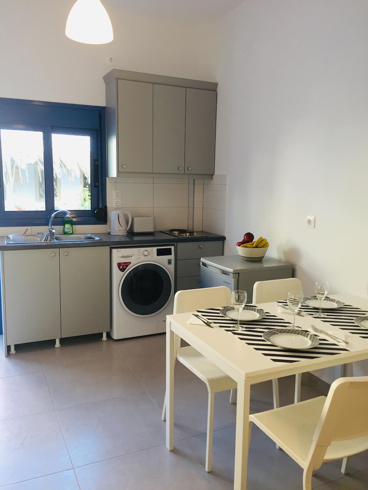 Willkommen in unserer brandneuen Unterkunft in Pigadia! Dieses komplett neue Gebäude befindet sich in Pigadia. Das Zentrum/der Hafen liegt nur 11 Gehminuten entfernt, in der Nähe aller herrlichen Restaurants, Bars und Geschäfte. Der nächste Strand liegt 800 Meter entfernt. Einen Supermarkt findest du nur 5 Gehminuten entfernt, mit einem Gemüsehändler, der sich bequem auf der anderen Straßenseite befindet. Genieße den Komfort während deines Aufenthalts bei uns.