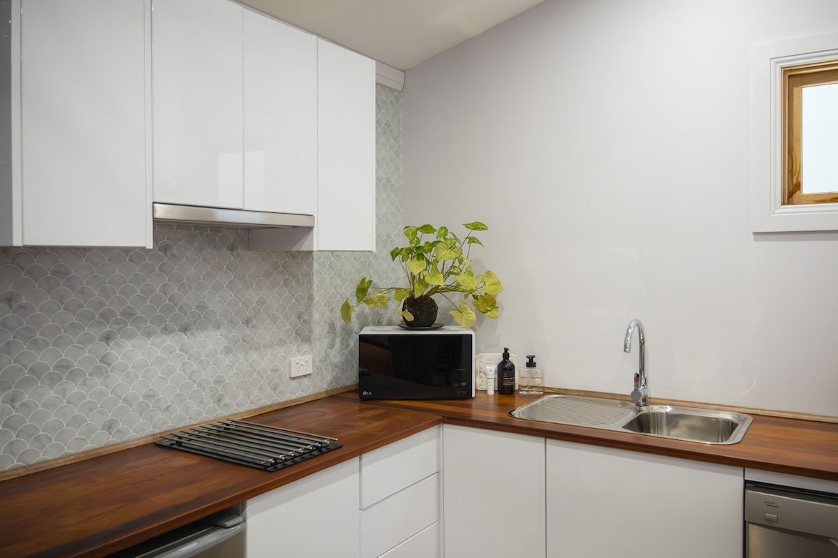 Yarrabee Retreat ist ein gemütlicher, moderner, frisch renovierter Raum (55 m²) auf unserem 2,5 Hektar großen Grundstück, umrahmt von Gummibäumen und mit reichlich Wildtieren. Yarrabee bedeutet „viele Gummibäume“, und ist nur fünf Fahrminuten von Clare entfernt. Ein einfacher 5-minütiger Spaziergang zum Clare Valley Cycle Hire und ein gemütlicher Spaziergang zu lokalen Weingütern. Ein heller, offener Wohnbereich, wobei die Küchenzeile mit einem Induktionskochfeld mit einem Kochfeld und einer Mikrowelle ausgestattet ist. Die Unterkunft ist perfekt für zwei, ok für drei, aber ein wenig eng für vier😁