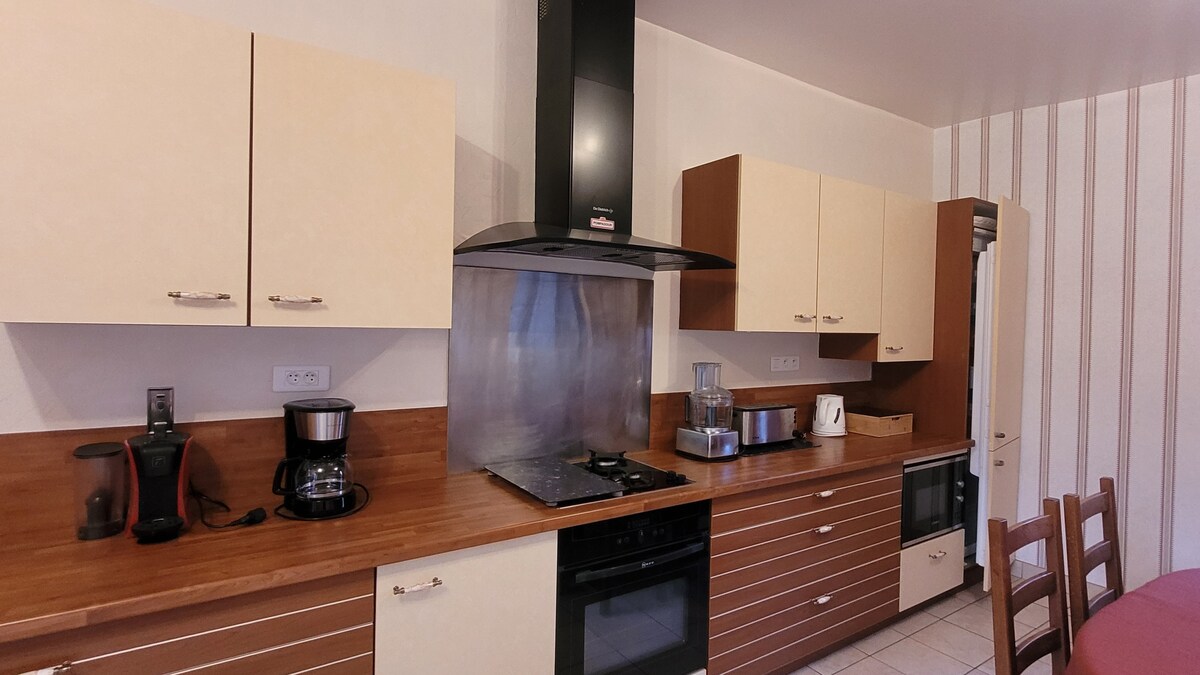 Bienvenue dans notre maison individuelle située à seulement quelques mètres de l’hippodrome et du château de Pompadour. Idéale pour un séjour en couple, en famille ou entre amis. 🛏️ 2 chambres spacieuses équipées de lits Super King Size et Queen Size 🛋️ Un canapé-lit dans le salon pour accueillir une personne supplémentaire. 🍽️ Une cuisine neuve et bien équipée pour préparer de bons petits plats. 🌿 Un cadre calme et agréable, parfait pour se détendre après une journée de découverte.
