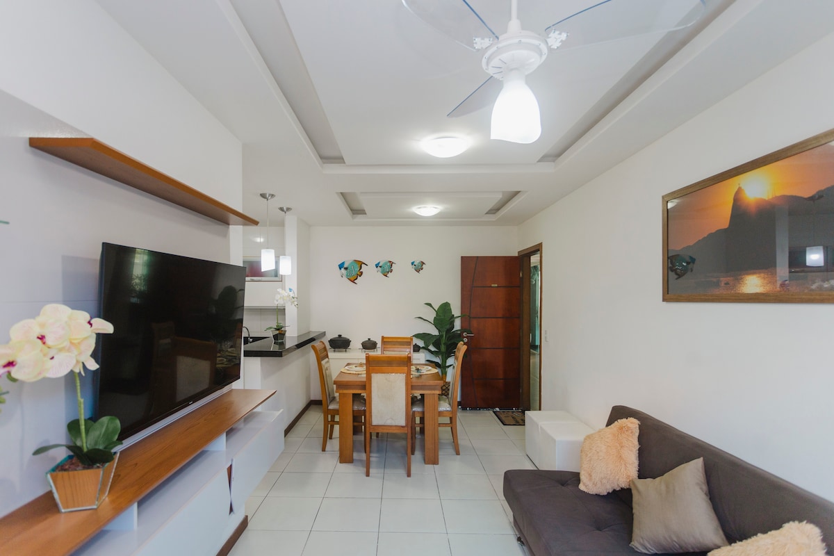 Unsere Wohnung befindet sich etwa 100 Meter vom Praia Grande entfernt, einem der schönsten und bekanntesten Strände von Arraial do Cabo, und ist ideal für Familien mit oder ohne Kinder und/oder Gruppen von Freunden von bis zu 9 Personen. In der Nähe unserer gemütlichen Wohnung gibt es mehrere Restaurants und Bars entlang der Küste. Ausgezeichnete Wohnung mit einem großen Wohnzimmer, Küche, geschlossener Veranda, die zu einem schönen Zimmer mit einer schönen Aussicht bei Sonnenaufgang werden kann; drei Schlafzimmer und drei Badezimmer.