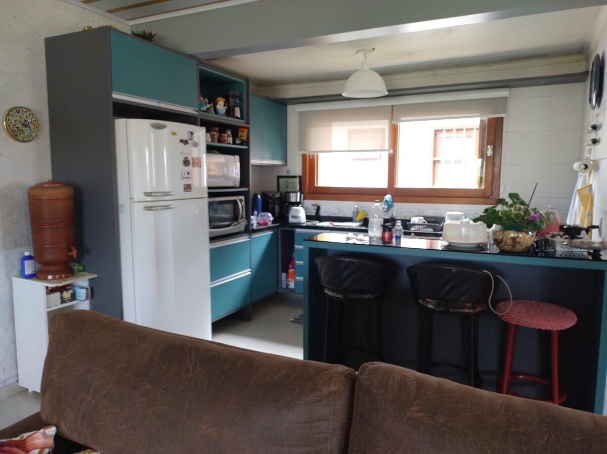 Das Haus ist geräumig, mit 4 Schlafzimmern, alle mit einem Badezimmer. Es befindet sich im Obergeschoss, mit einem Balkon vorne und hinten eine schöne Terrasse, die es den Gästen ermöglicht, einen guten Chimarrão sowohl am Morgen als auch am Nachmittag zu genießen. Es ist eine ruhige Gegend, mit einem Supermarkt mit einer Bäckerei in der Nähe (50 m). Es ist 2 Blocks vom Strand mit Angelplatz und Bad entfernt. Es liegt in der Nähe von Torres (30 Minuten mit dem Auto entfernt). Es ist 5 Minuten vom Zentrum von Arroio do Sal entfernt. Parkplätze stehen vor dem Gebäude zur Verfügung.