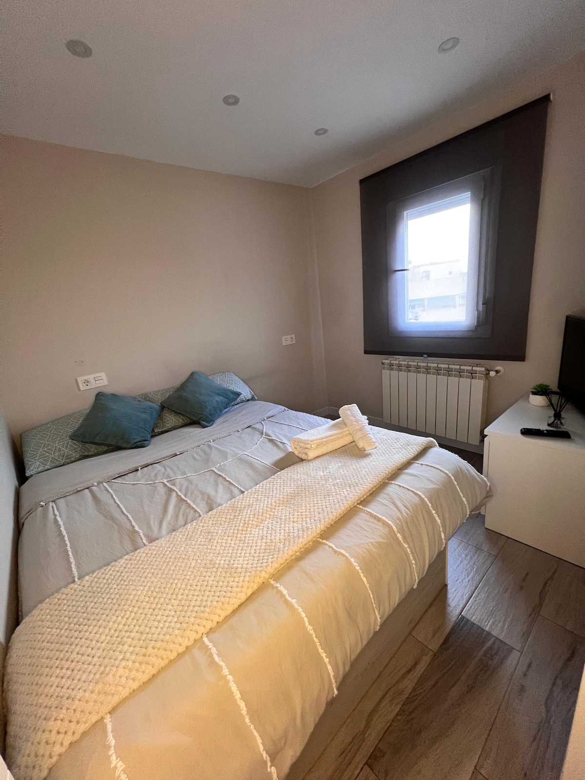 Apartamento con 2 habitaciones supermercado farmacia debajo de edificio dificil de localizar aparcamiento en dia, muy dificil en noche. 300 metros hay bus directo a madrid "Principe Pio" No admite mascotas No se puede fumar