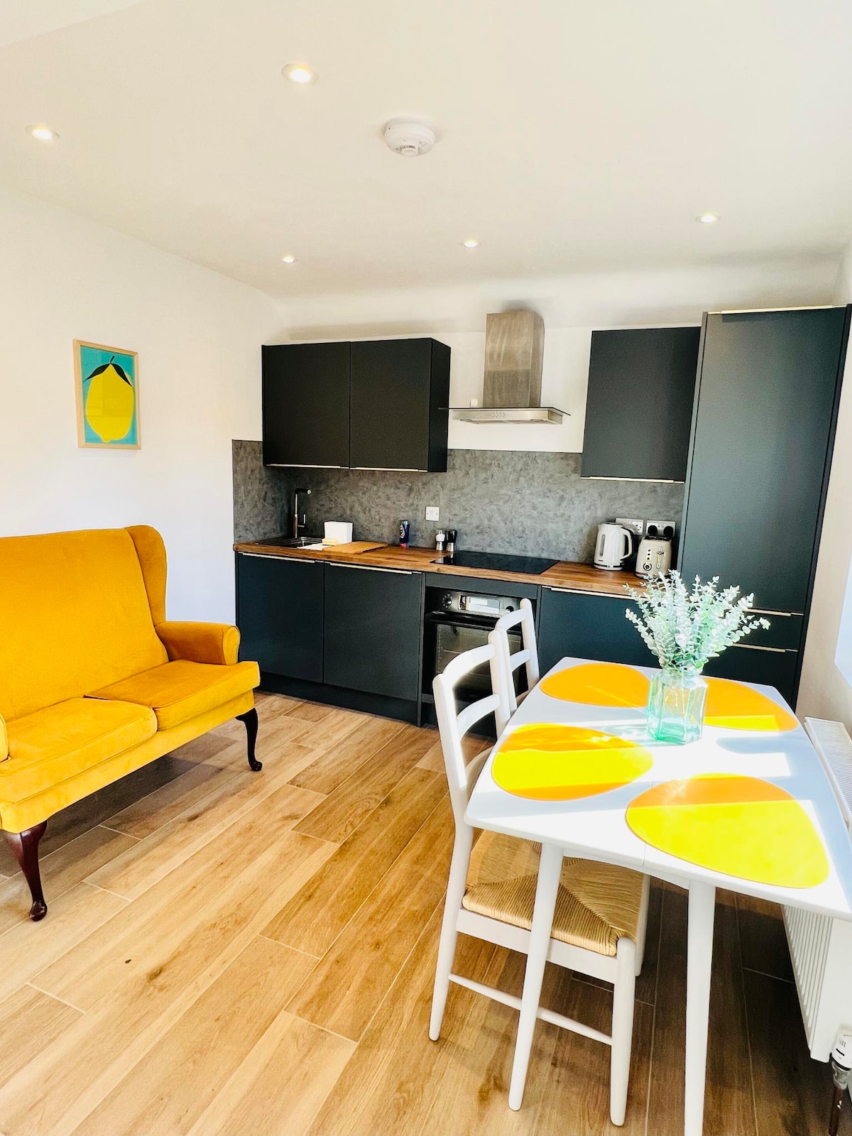 This spacious flat comfortably sleeps 4, featuring a king bed in the master bedroom and a sofa bed in the second room, which also has a TV. The kitchen is fully equipped with a fridge freezer, washing machine, and oven. Enjoy a walk-in shower in the modern bathroom. Located within walking distance to Millfield School, Clarks Village, and a bus stop. Glastonbury is just 5 minutes by car. The flat offers parking, a private garden, and views of Glastonbury Tor. Perfect for a relaxing stay!
